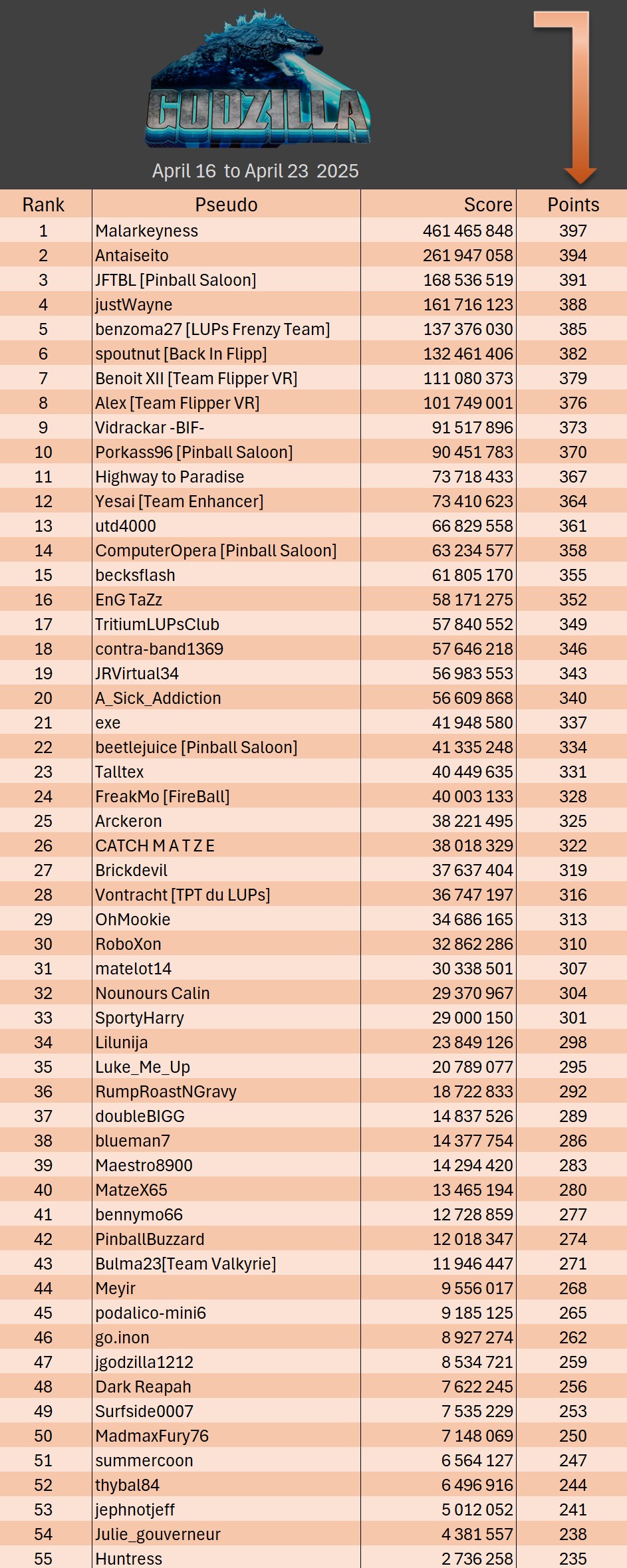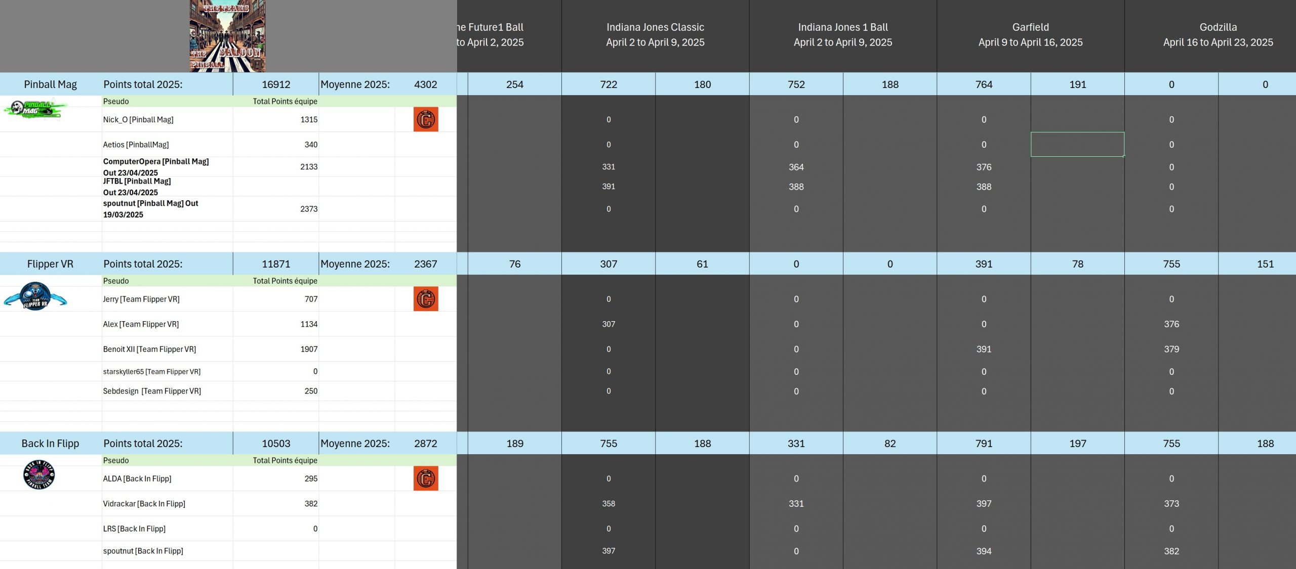 Classical TournamentResultsPodiumoverall team rankingLeaderboardWomen's rankingTeam points detailsTrophiesTournements Season 1TournamentsSaison 2Saison 1Saison 0LeaderboardsSaison 2Saison 1Saison 0EventsSummer Pinball Fest 2025Fan Layout CityThe Pinball...