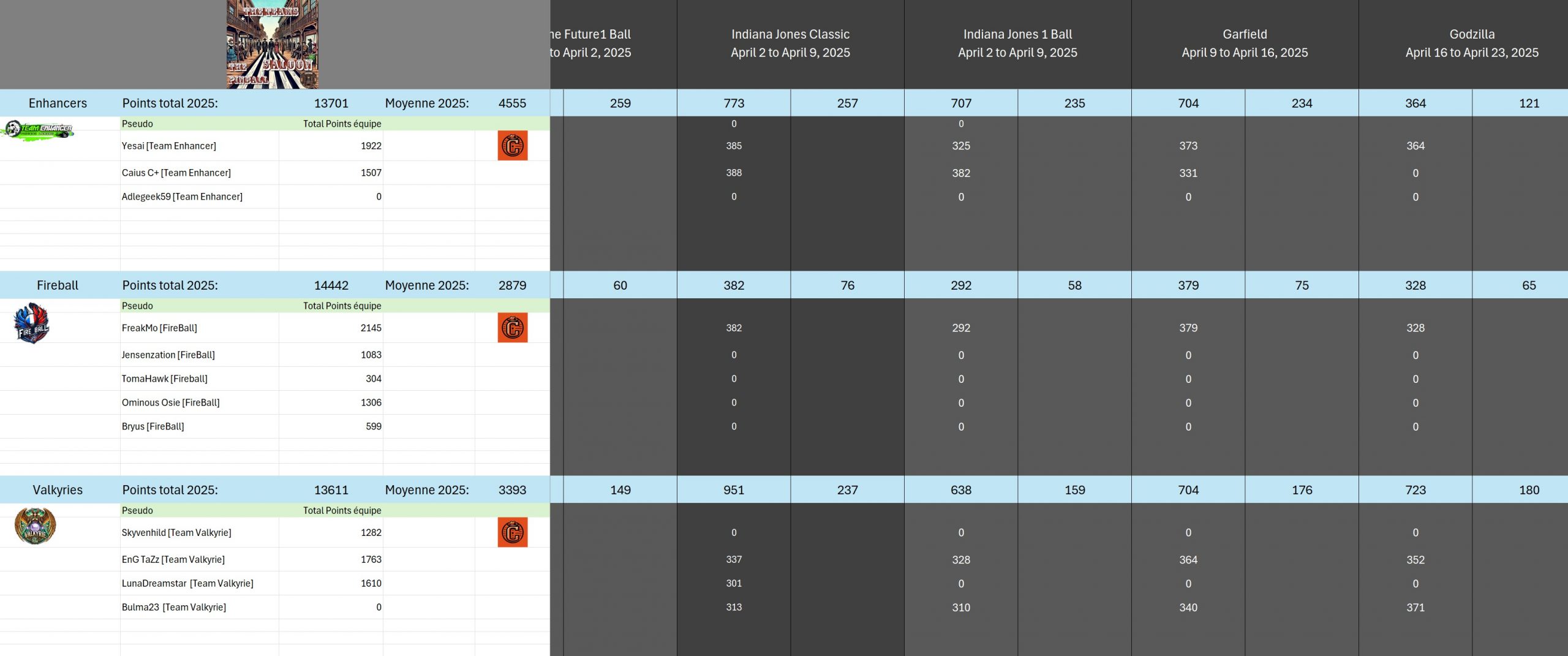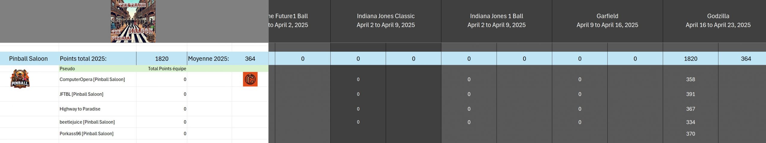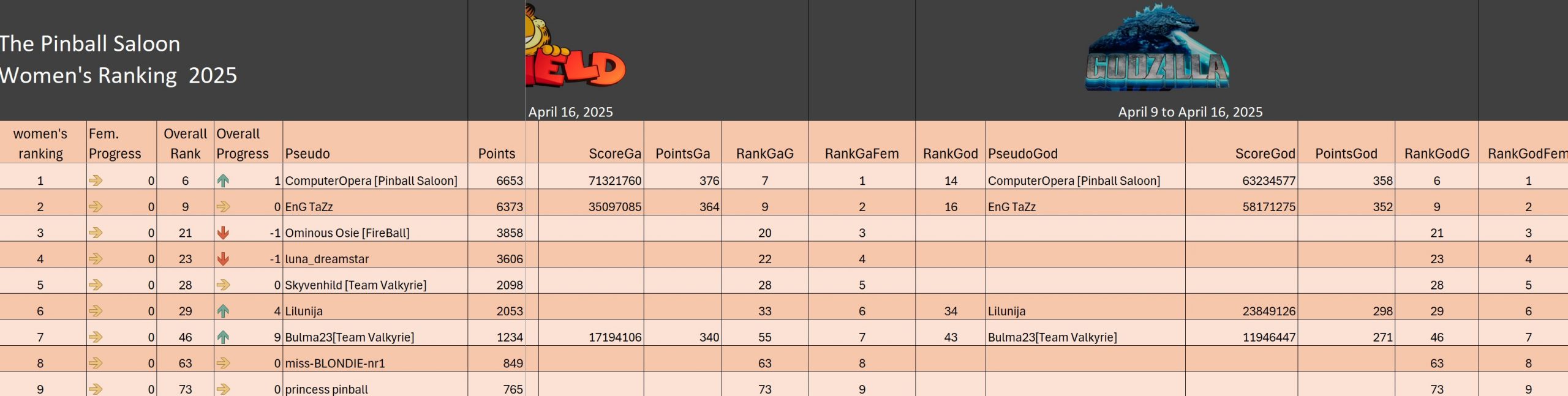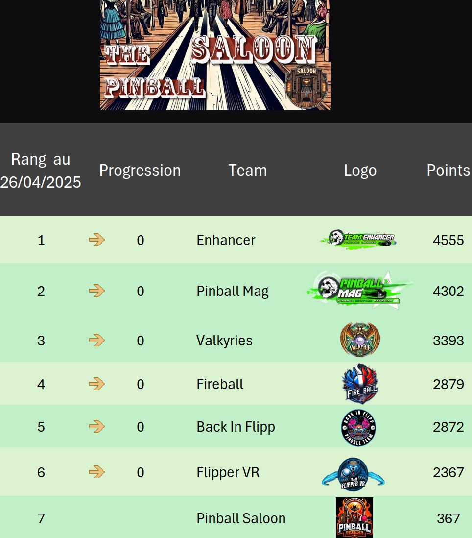 Classical TournamentResultsoverall team rankingPodiumResultsLeaderboardWomen's rankingTeam points detailsTrophiesTournements Season 1TournoisMusiqueFractalesA proposSoutienThe Pinball SaloonDiscordFacebookSite webBluesky The Pinball SaloonCommunautéNo Man's SkyMass...