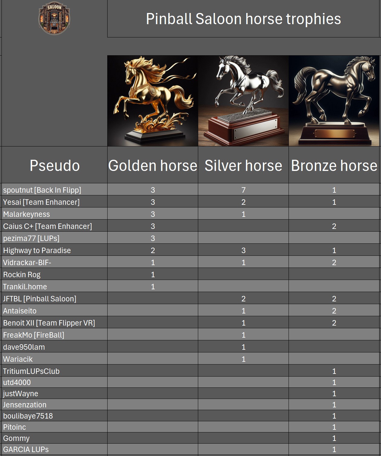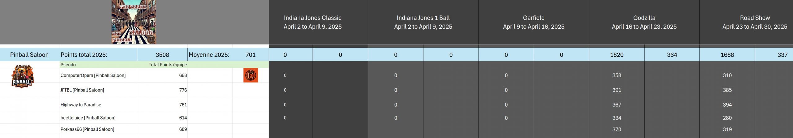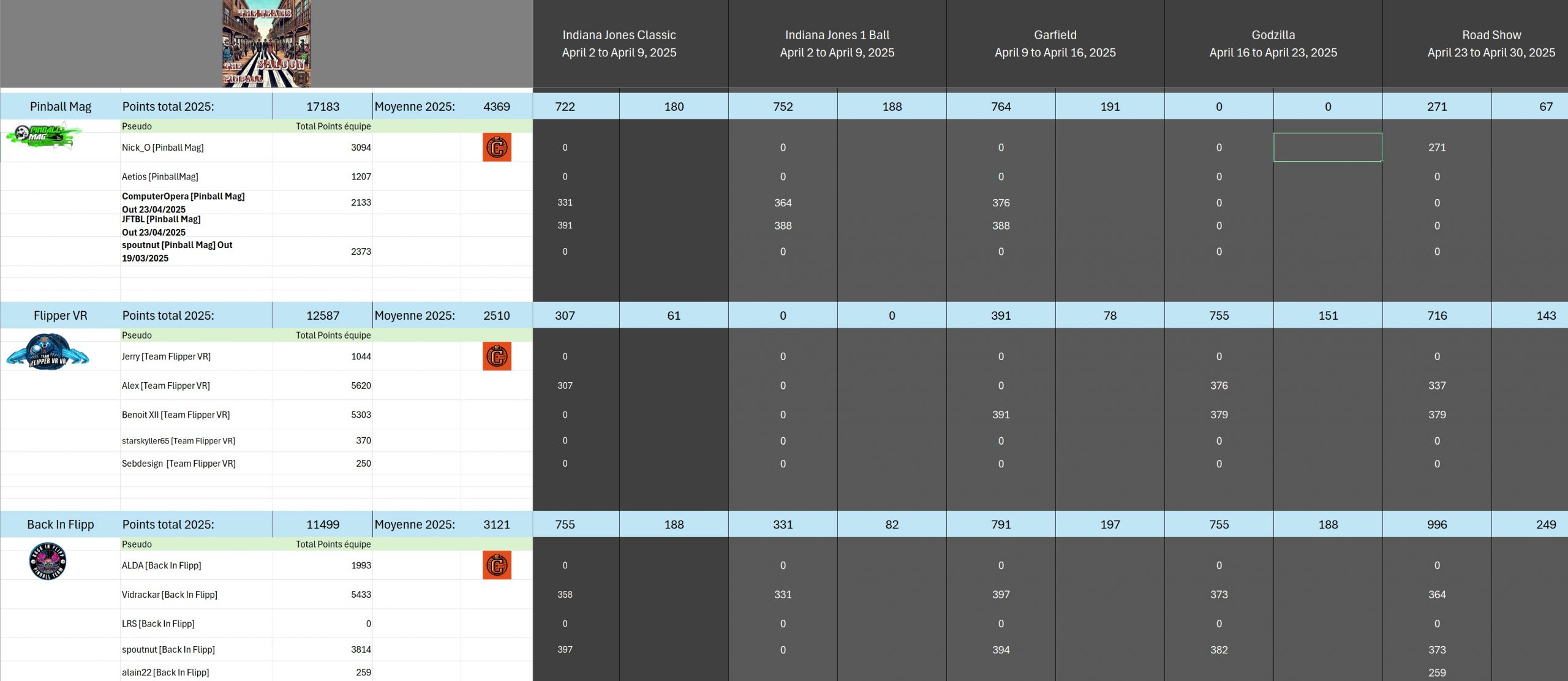 Classical TournamentResultsoverall team rankingPodiumResultsLeaderboardWomen's rankingTeam points detailsTrophiesTournements Season 1TournoisMusiqueFractalesA proposSoutienThe Pinball SaloonDiscordFacebookSite webBluesky The Pinball SaloonCommunautéNo Man's SkyMass...
