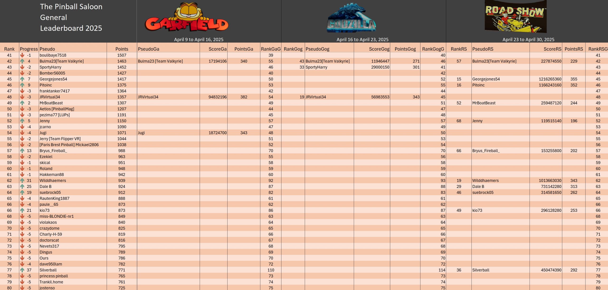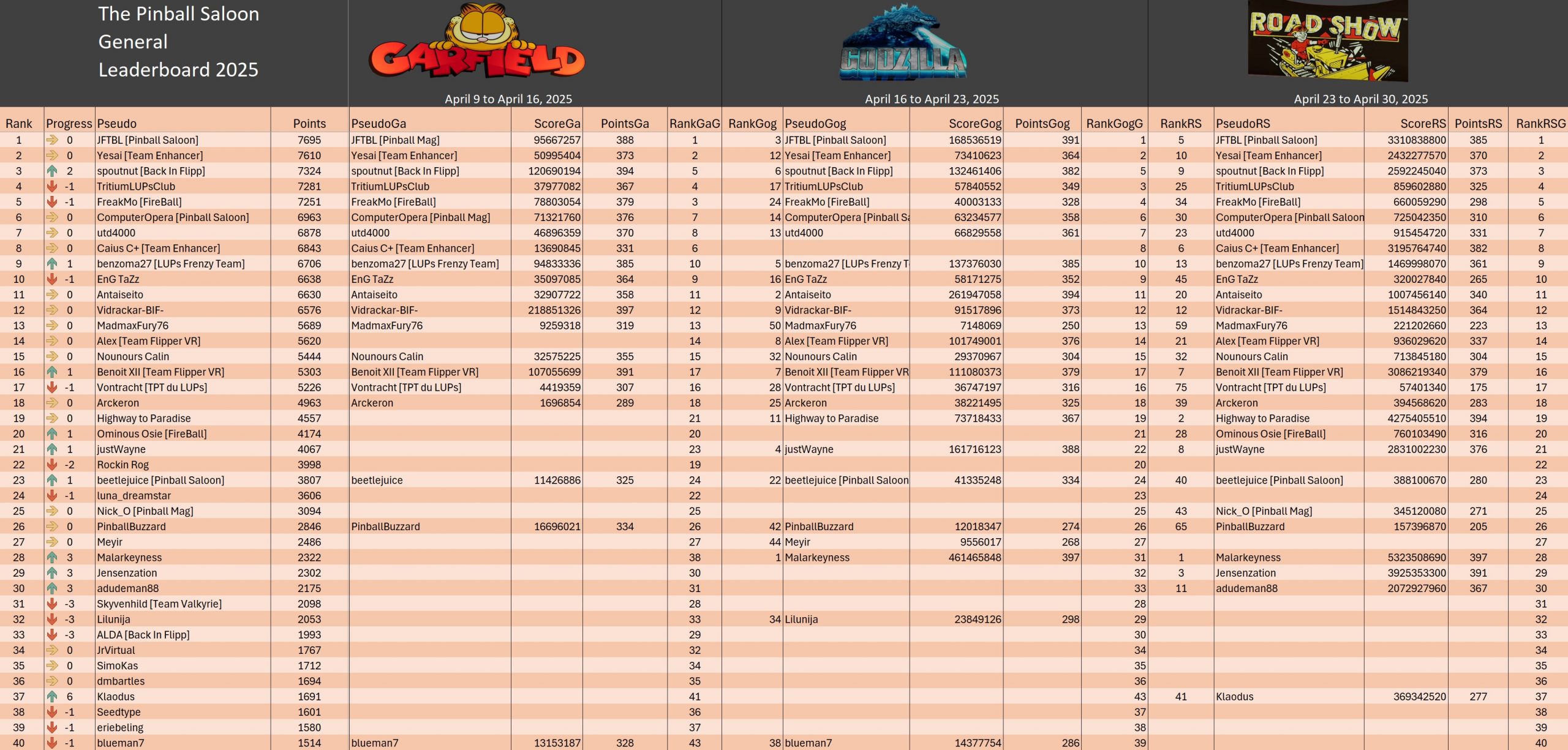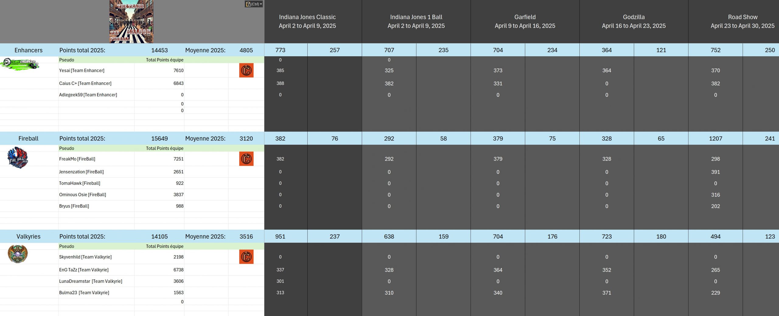 Classical TournamentResultsoverall team rankingPodiumResultsLeaderboardWomen's rankingTeam points detailsTrophiesTournements Season 1TournoisMusiqueFractalesA proposSoutienThe Pinball SaloonDiscordFacebookSite webBluesky The Pinball SaloonCommunautéNo Man's SkyMass...