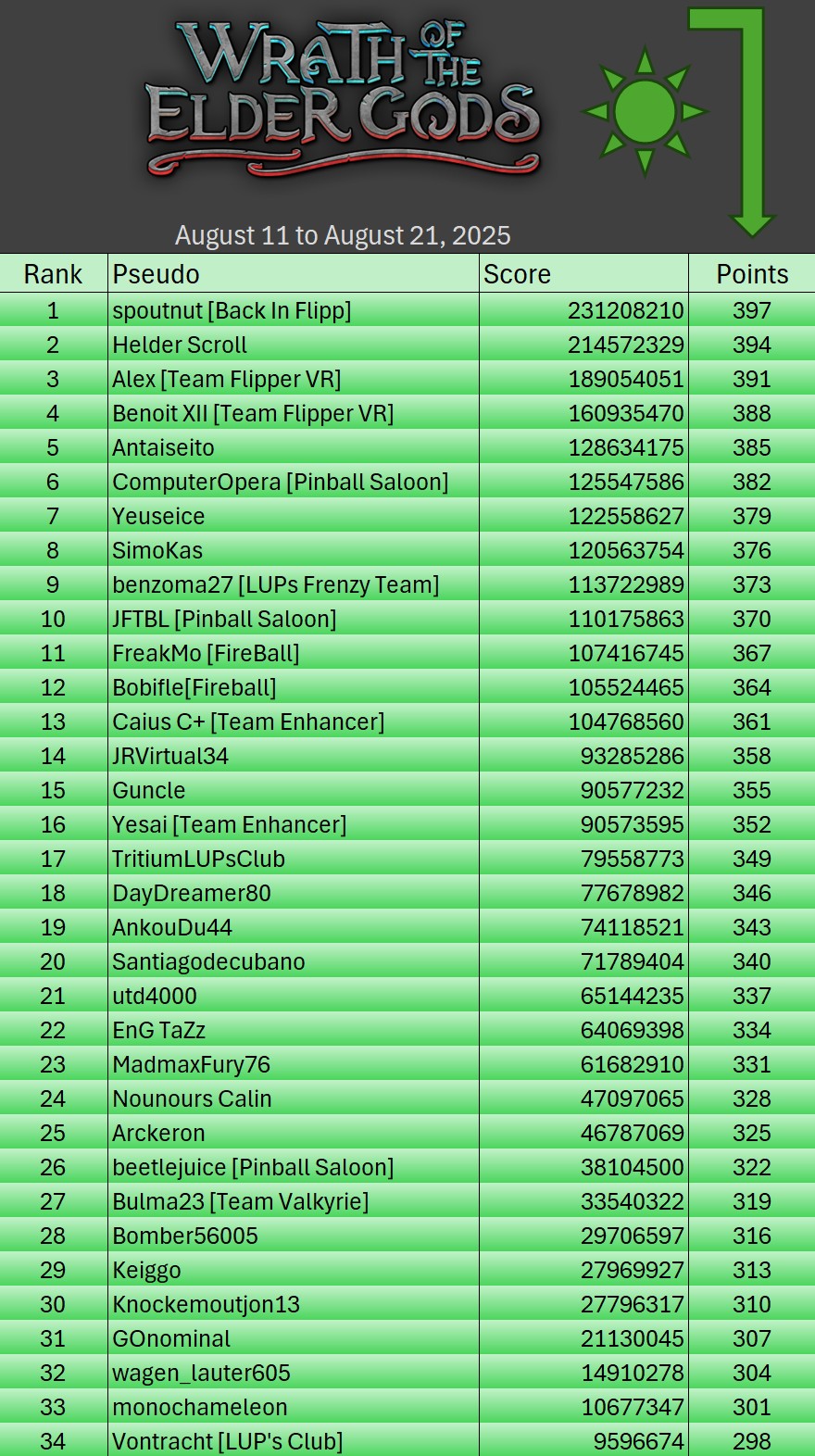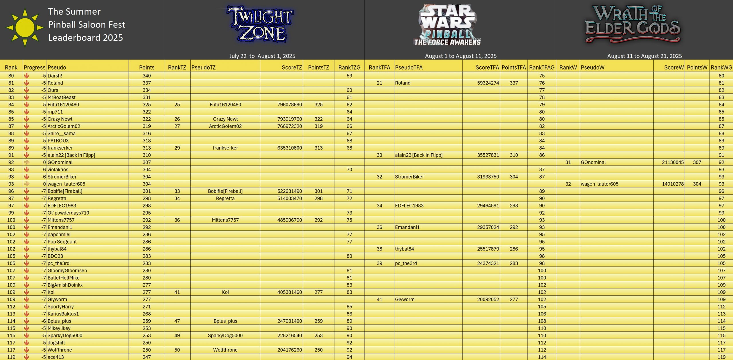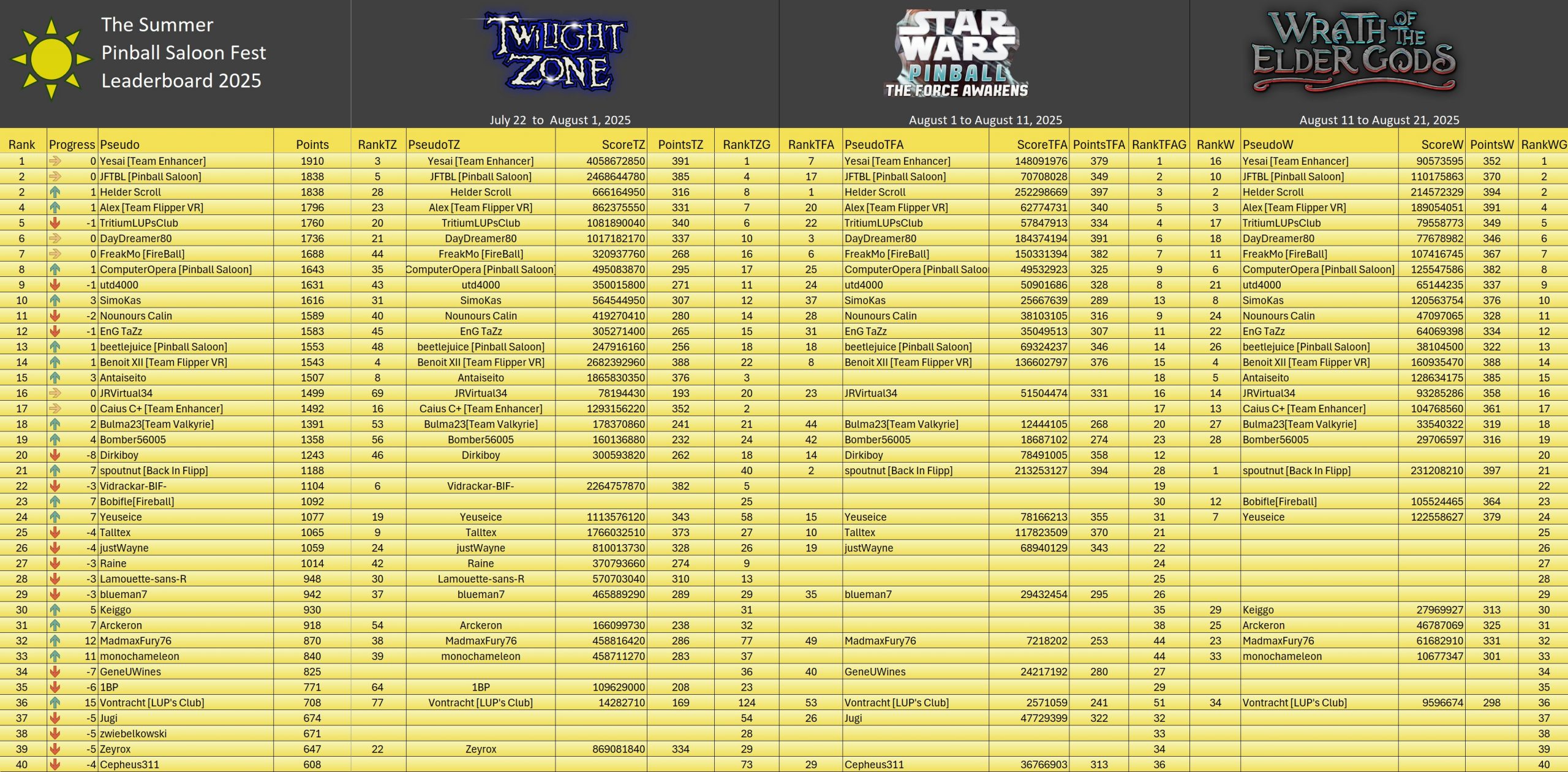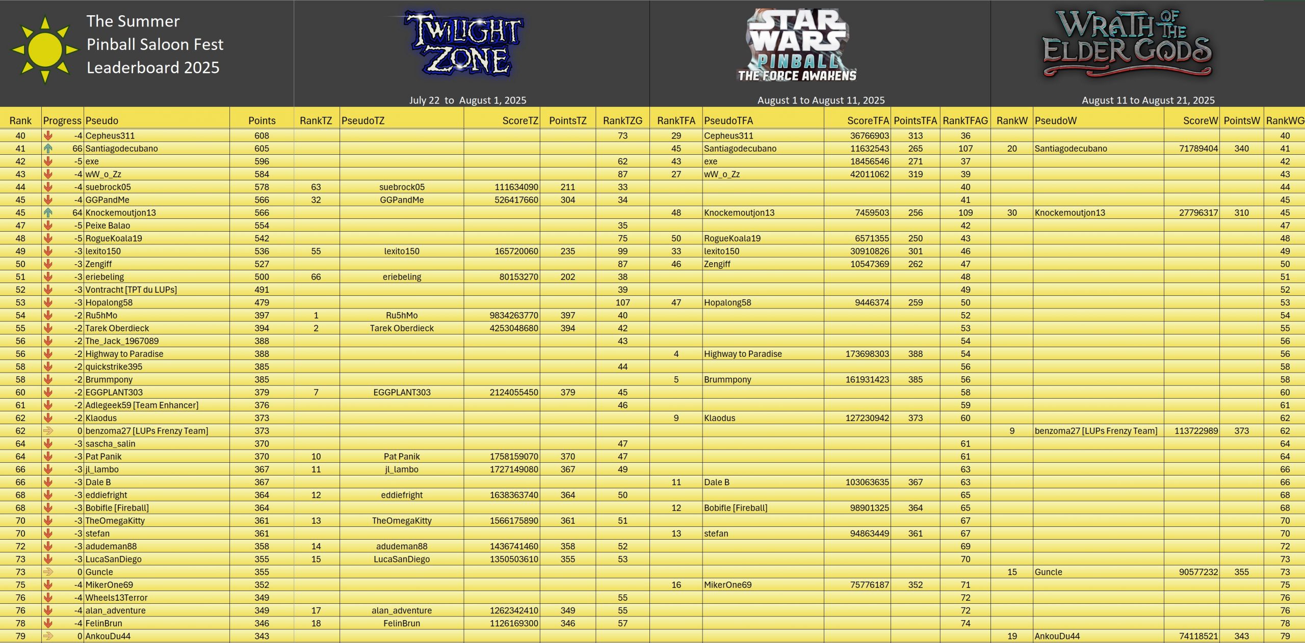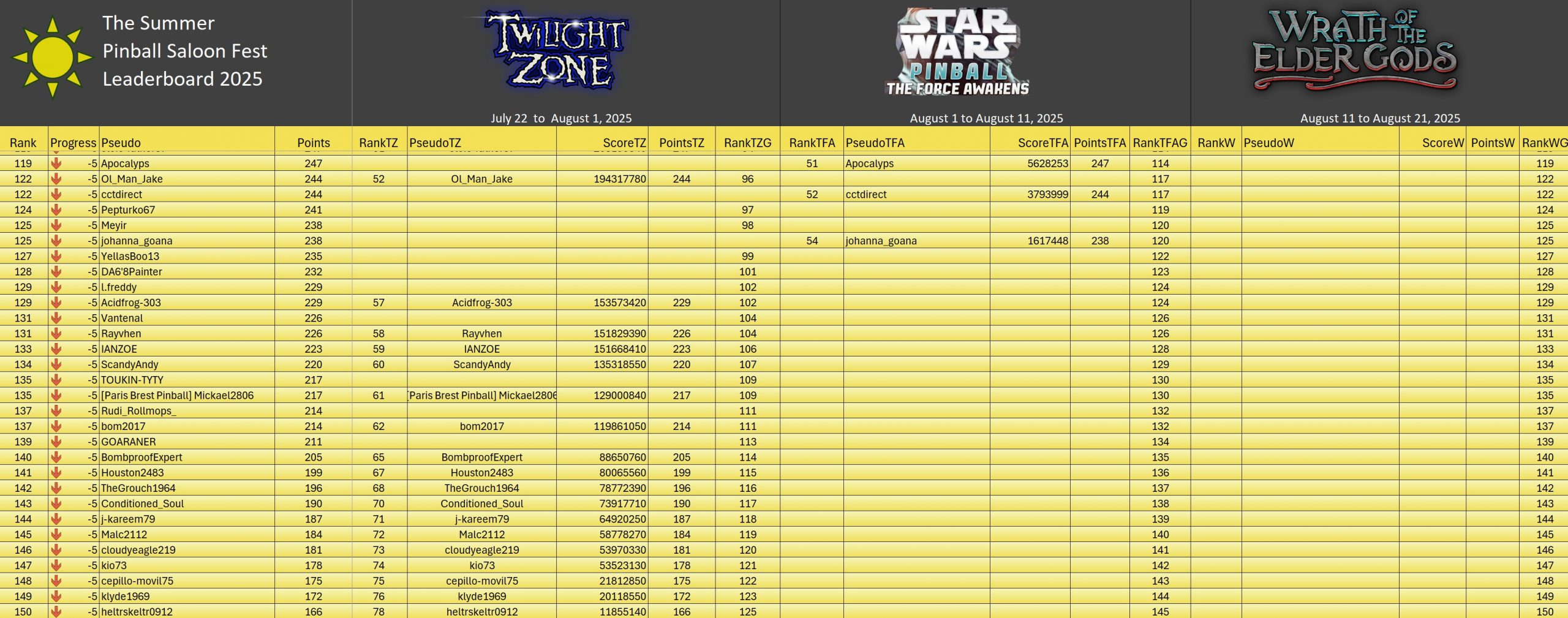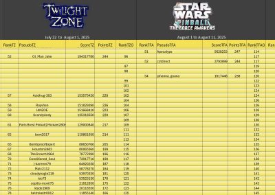 Classic TournamentID #Fnd26e2qy9 Pinball FXTop 5Resultsgeneral ranking (Click on the images to enlarge them)Summer Pinball Fest 2025TournamentsSaison 2Saison 1Saison 0LeaderboardsSaison 2Saison 1Saison 0EventsSummer Pinball Fest 2025Fan Layout CityThe Pinball...