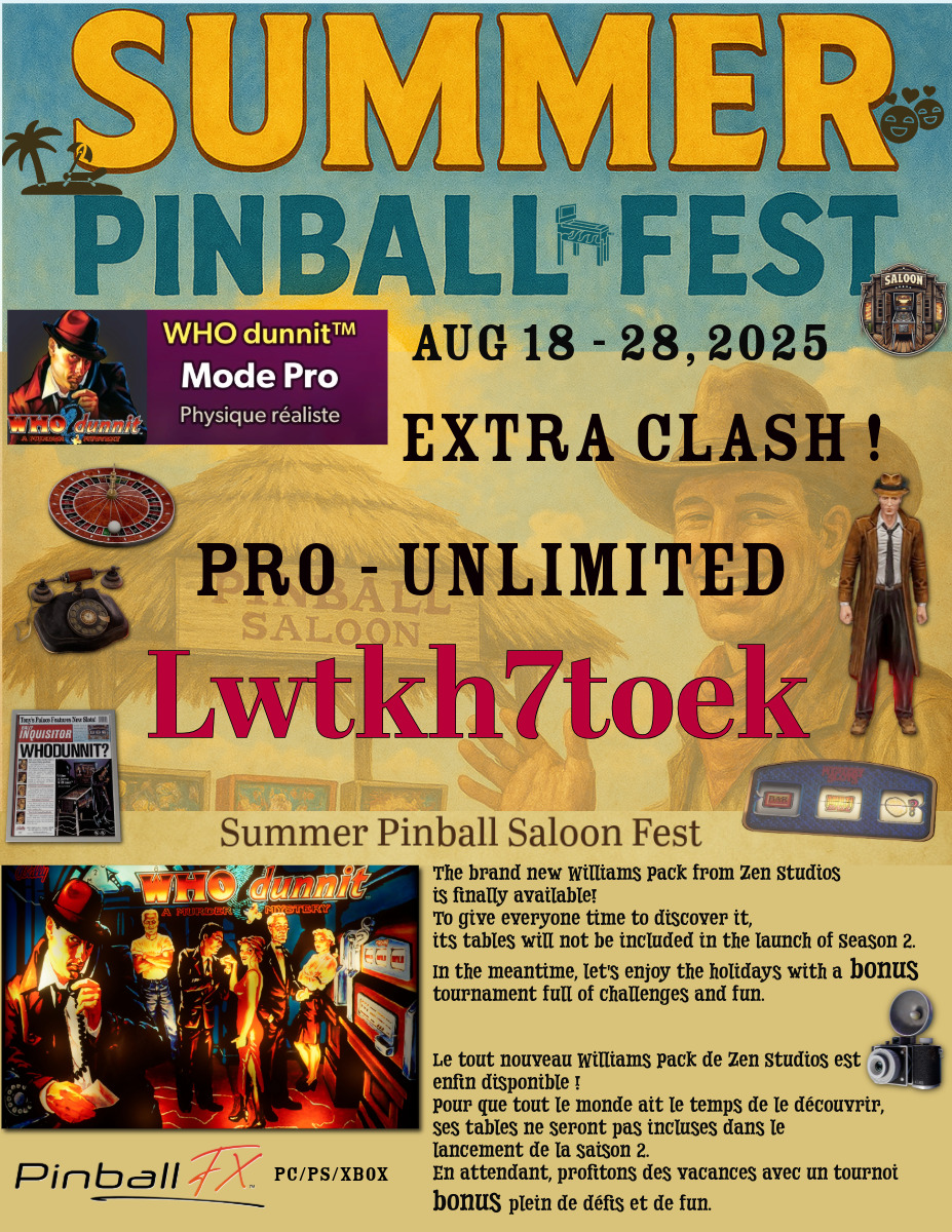 Classical TournamentID #Vxl6nr3xy6 Pinball FXTop 5ResultsExtract from the general ranking (Click to enlarge)Tournements Summer Pinball Fest 2025TournamentsSaison 2Saison 1Saison 0LeaderboardsSaison 2Saison 1Saison 0EventsSummer Pinball Fest 2025Fan Layout CityThe...