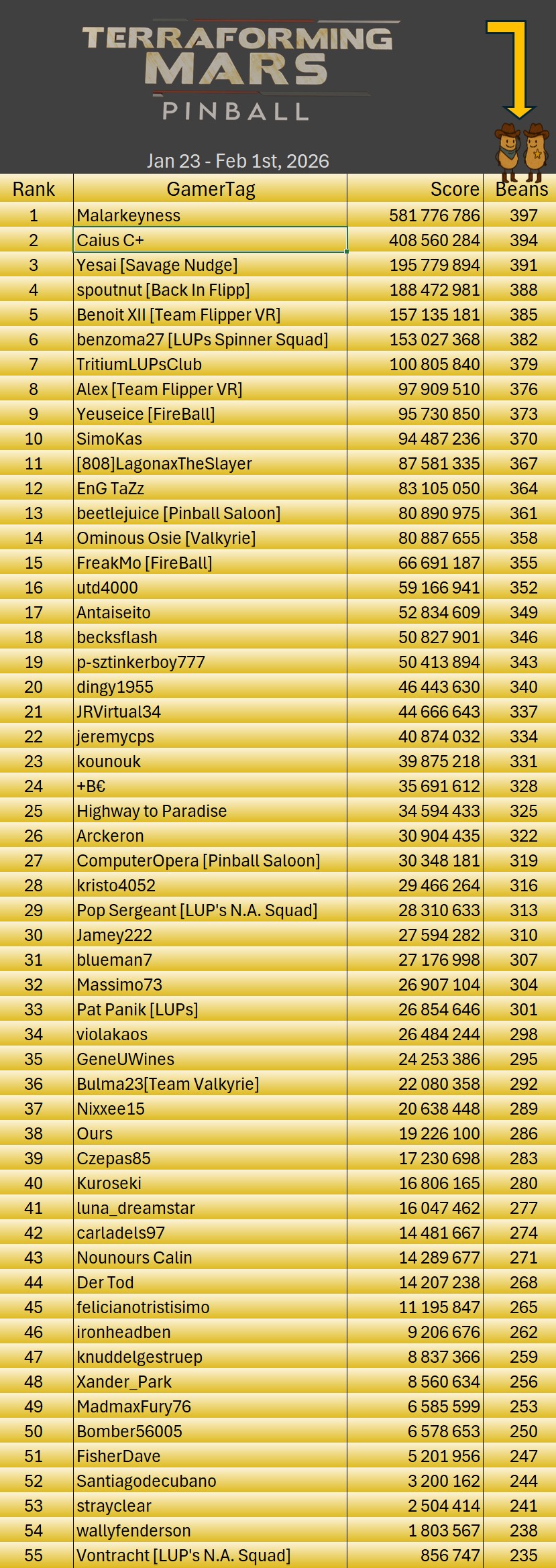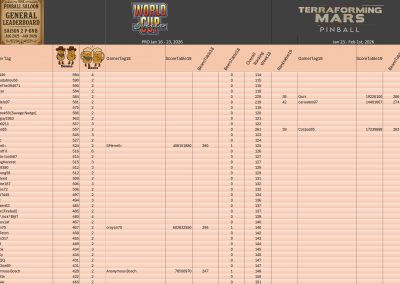 Jan 23 – 31, 2026 Terraforming Mars Pinball