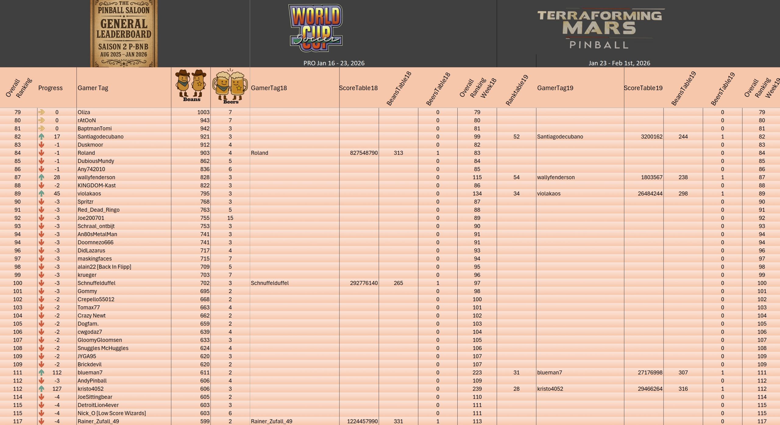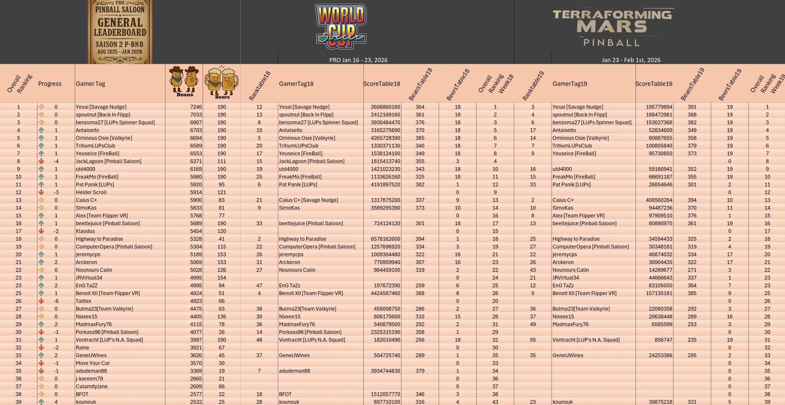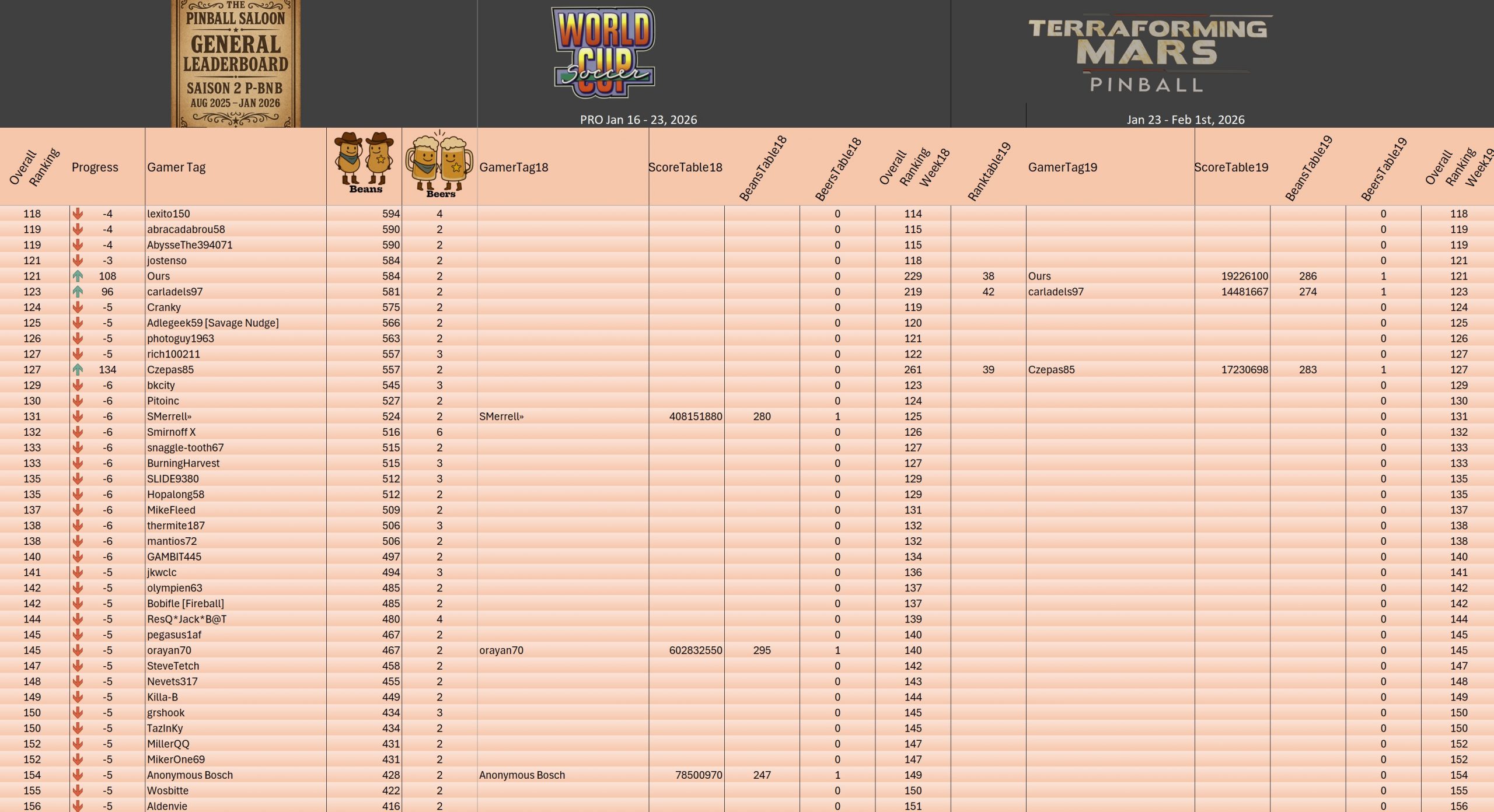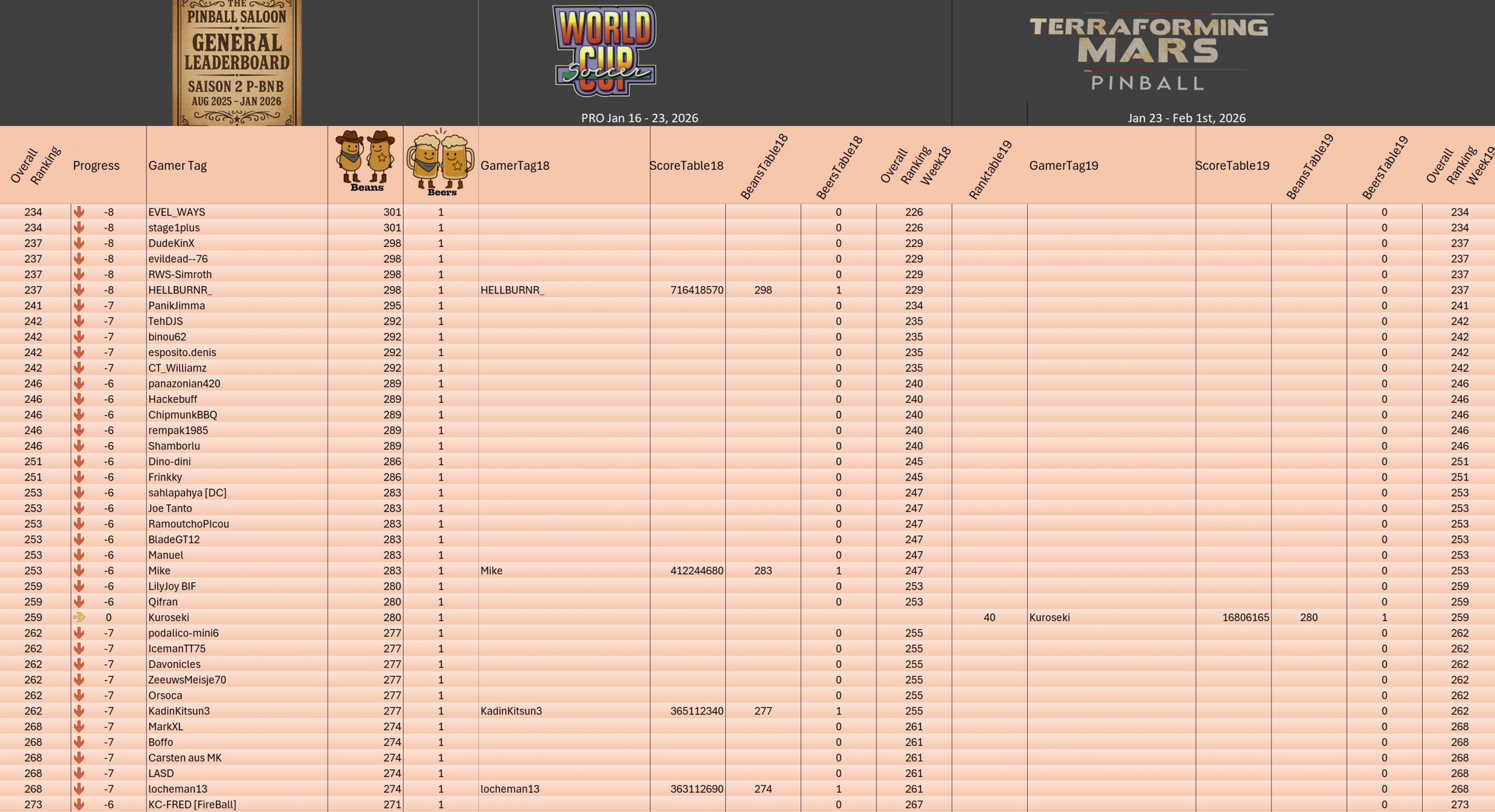 PRO TournamentID #Xwj16g33ol Pinball FXTop 5Result TournamentExtract from the general rankingWomen's rankingTeam's rankingPistoleros's rankingSeason 2 P-BnB Sept 2025 - Jan 2026TournamentsSaison 2Saison 1Saison 0LeaderboardsSaison 2Saison 1Saison 0EventsSummer...