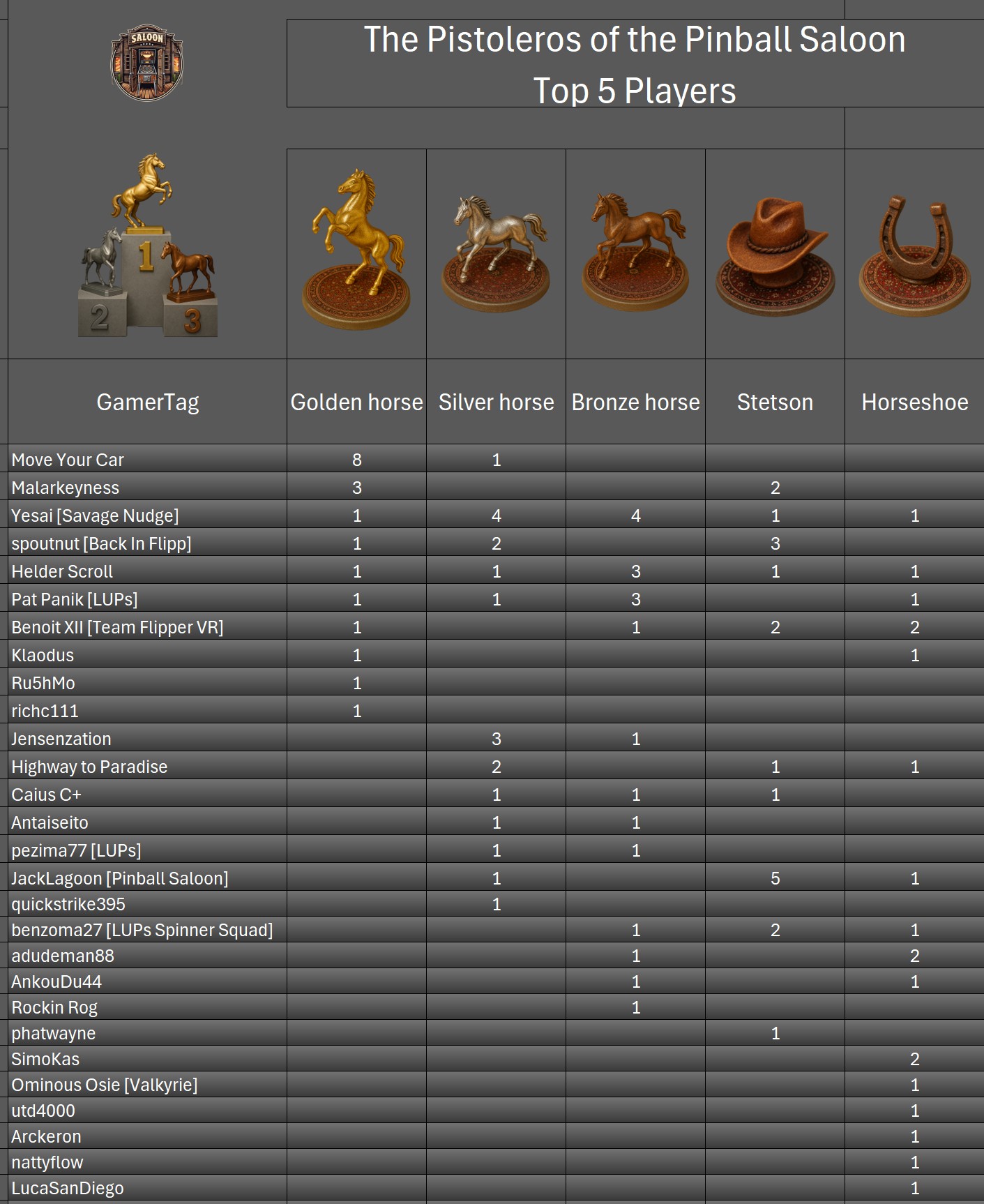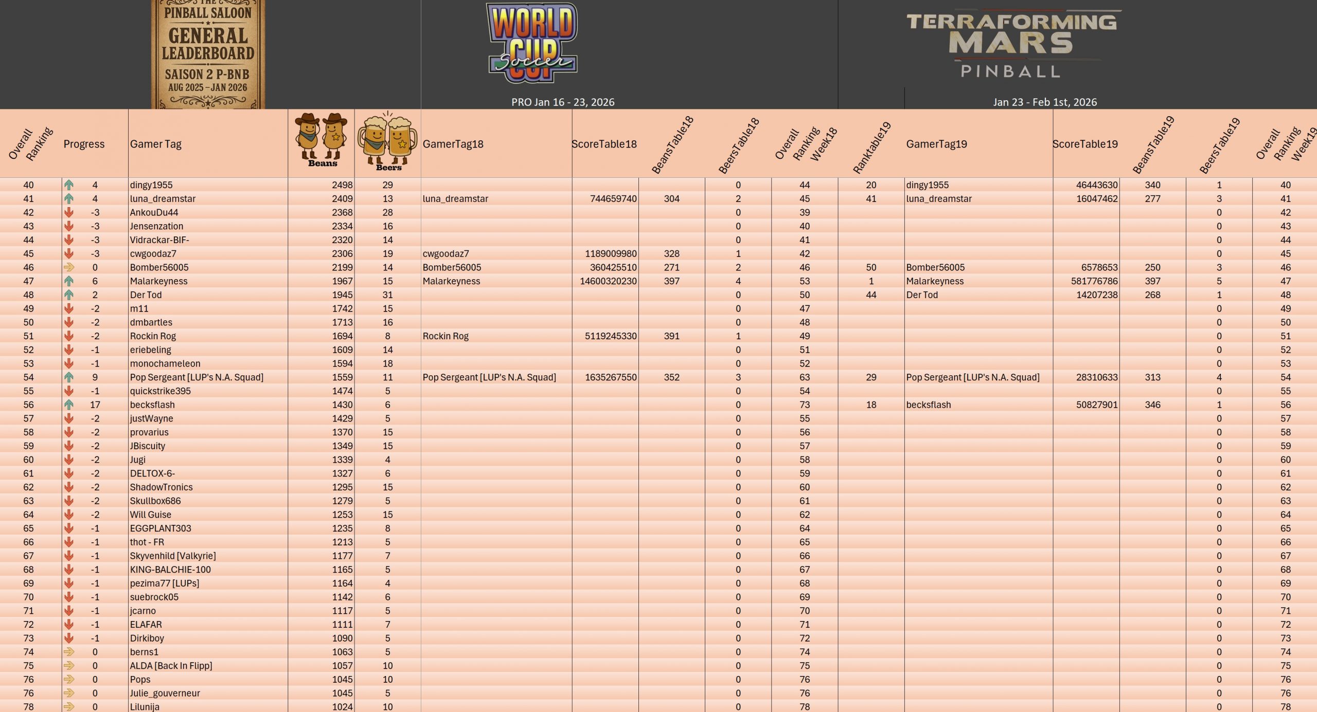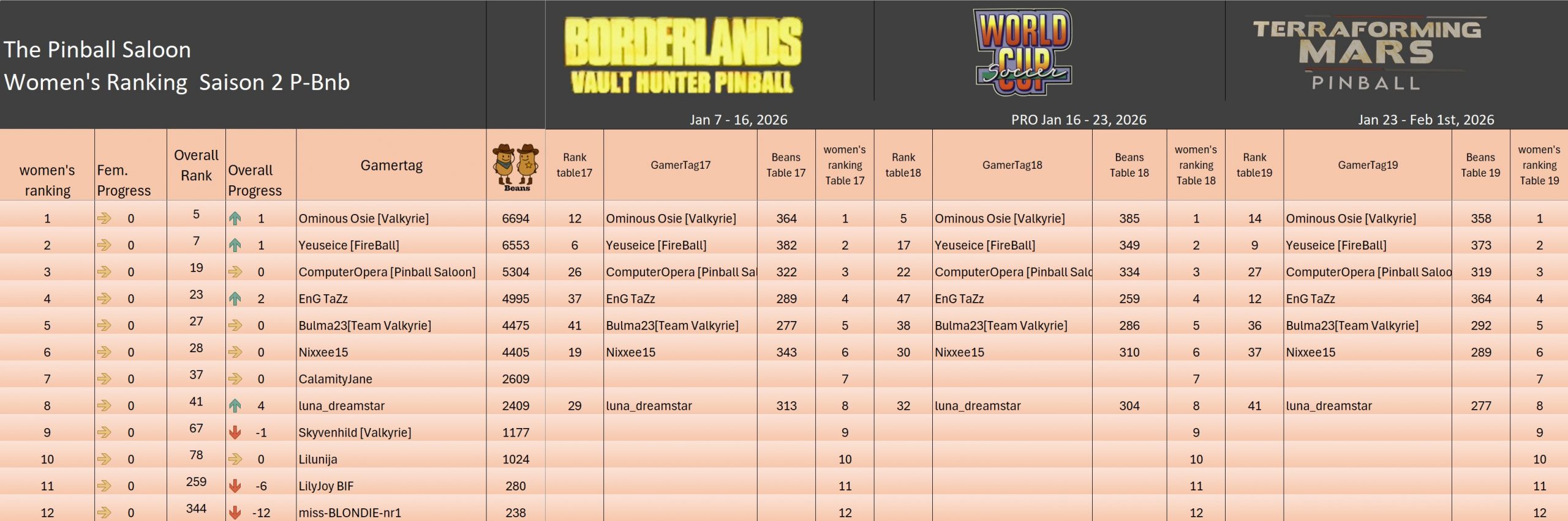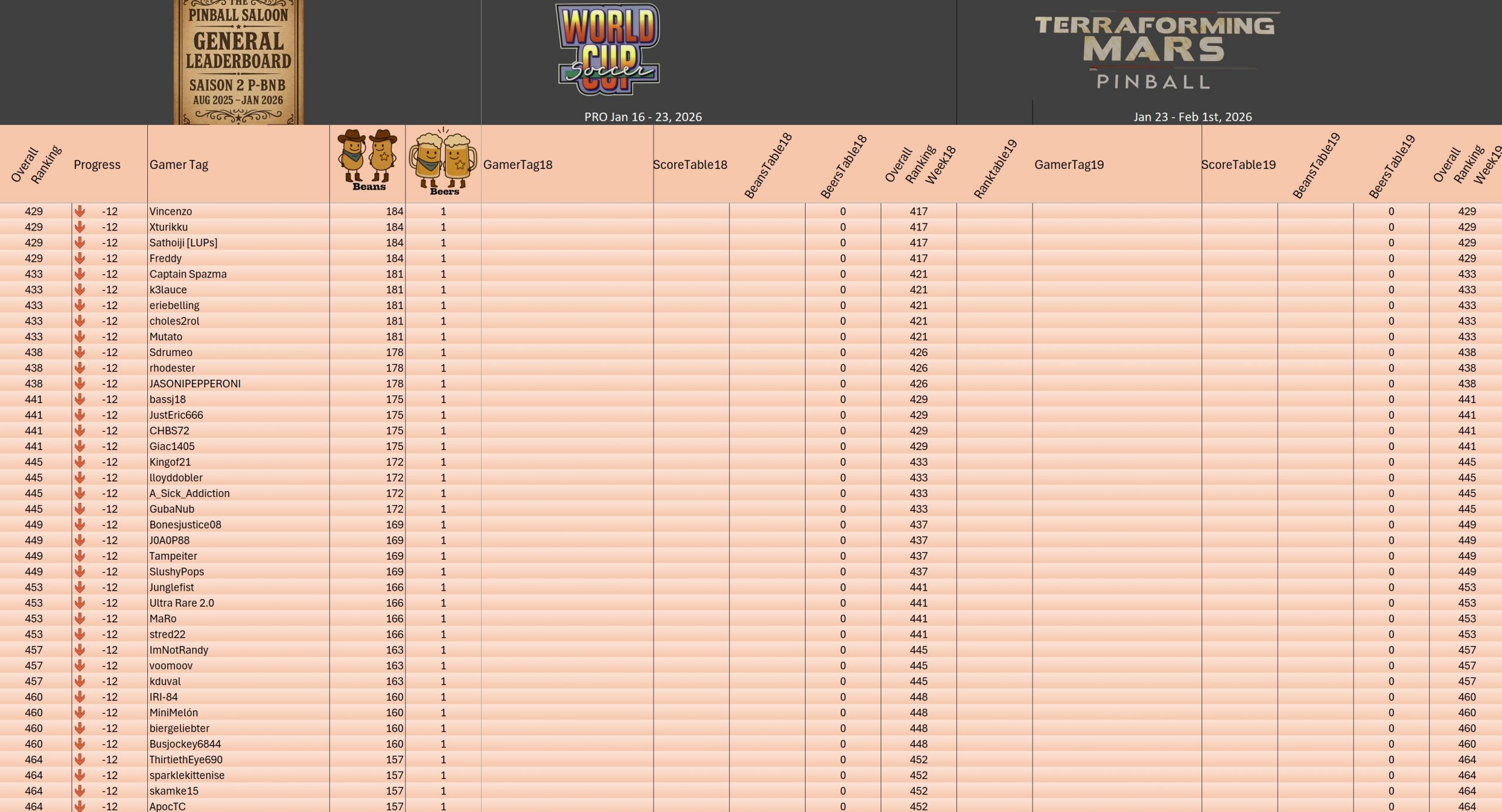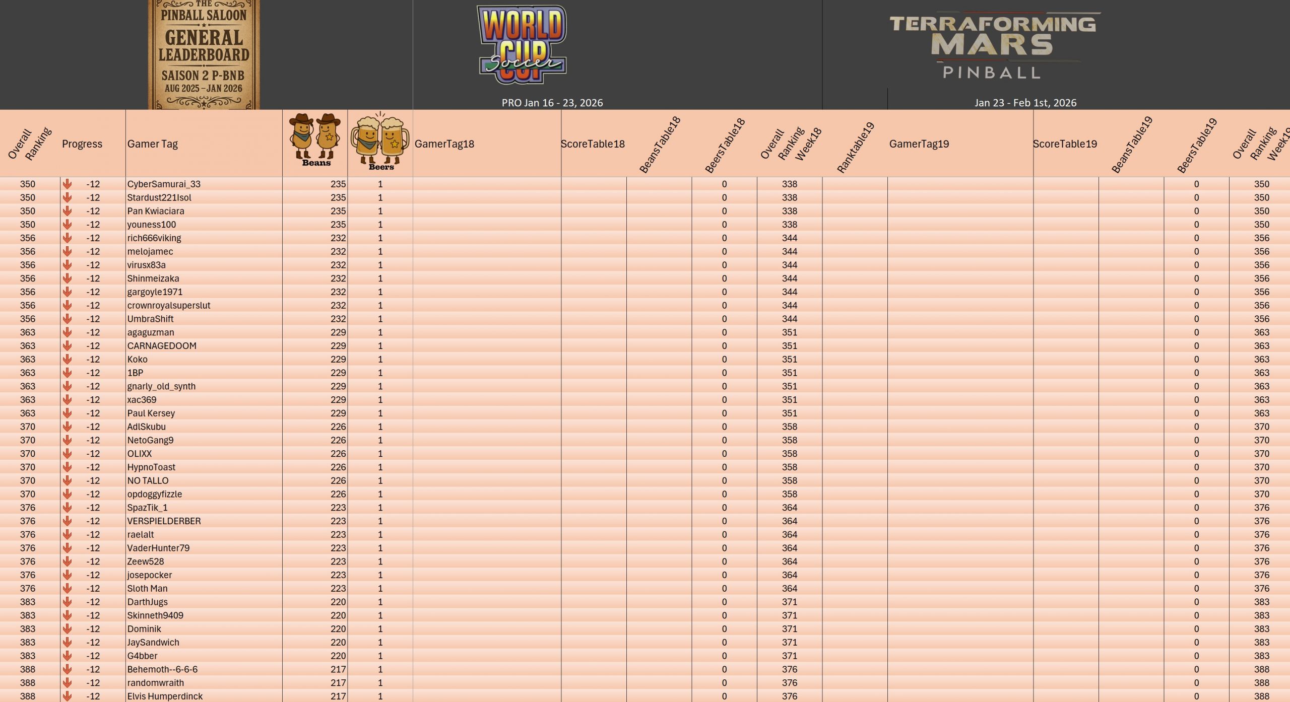 PRO TournamentID #Xwj16g33ol Pinball FXTop 5Result TournamentExtract from the general rankingWomen's rankingTeam's rankingPistoleros's rankingSeason 2 P-BnB Sept 2025 - Jan 2026TournamentsSaison 2Saison 1Saison 0LeaderboardsSaison 2Saison 1Saison 0EventsSummer...