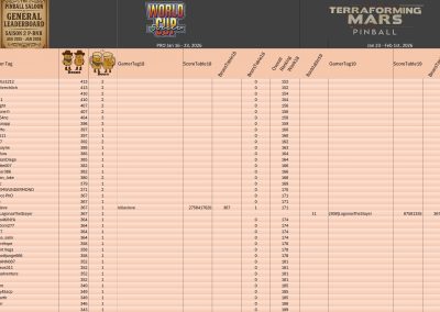 Classic TournamentID #Bycp08e4ia Pinball FXTop 5Result TournamentExtract from the general ranking🇫🇷 Le tournoi Guardians of the Galaxy s’est déroulé en parallèle du tournoi Monster Bash PRO dans le cadre du Winter Pinball Fest 2025-2026.Les résultats des deux...