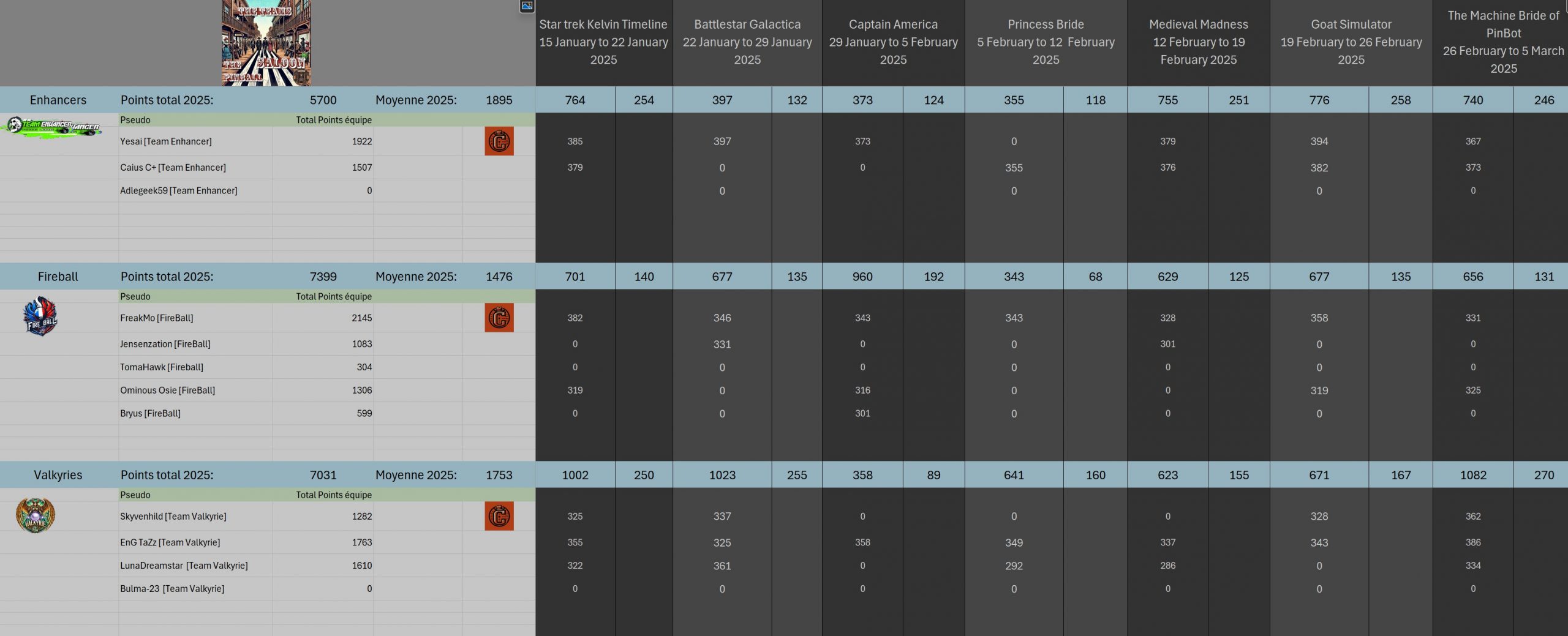 Classical TournamentResultsPodiumoverall team rankingLeaderboardWomen's rankingTeam points detailsTrophiesTournements Season 1TournoisMusiqueFractalesA proposSoutienThe Pinball SaloonDiscordFacebookSite webBluesky The Pinball SaloonCommunautéNo Man's SkyMass Effect...
