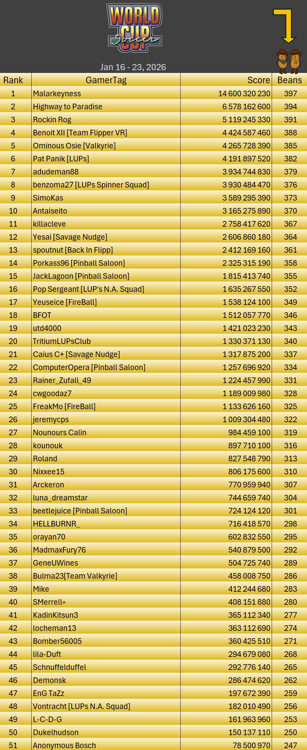 Jan 16 – 23, 2026 World Cup Soccer PRO