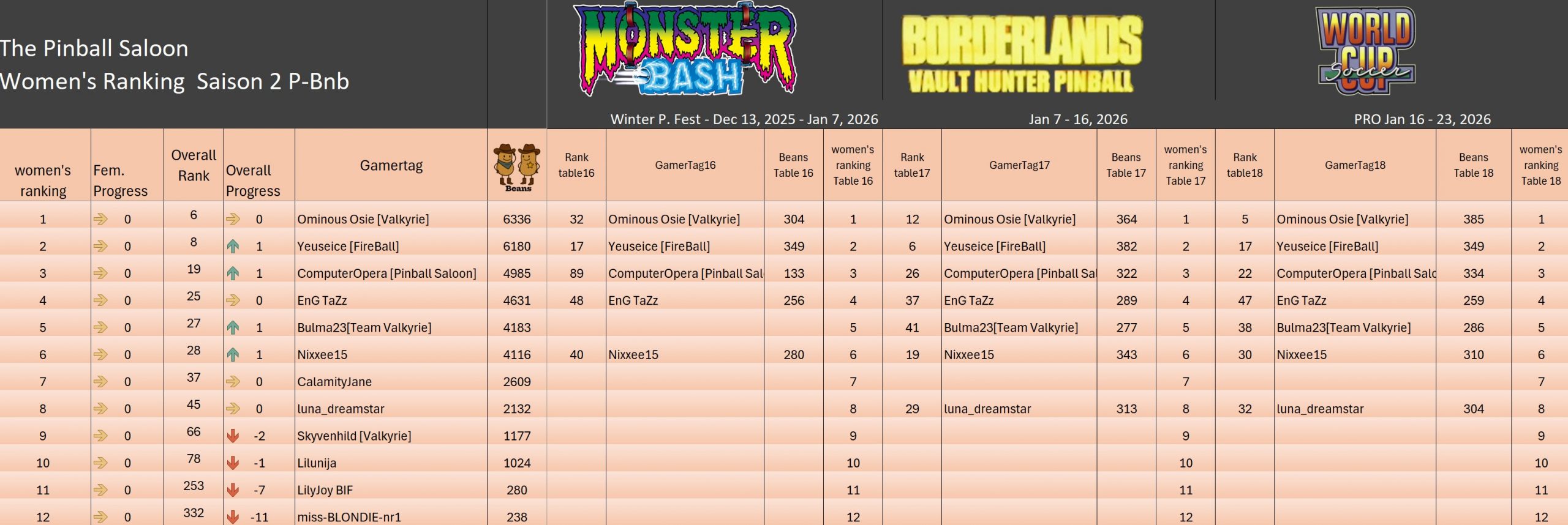 Classic TournamentID #J18zw5i4ag  Pinball FXTop 5Result TournamentExtract from the general rankingWomen's rankingTeam's rankingPistoleros's rankingSeason 2 P-BnB Sept 2025 - Jan 2026TournamentsSaison 2Saison 1Saison 0LeaderboardsSaison 2Saison 1Saison 0EventsSummer...