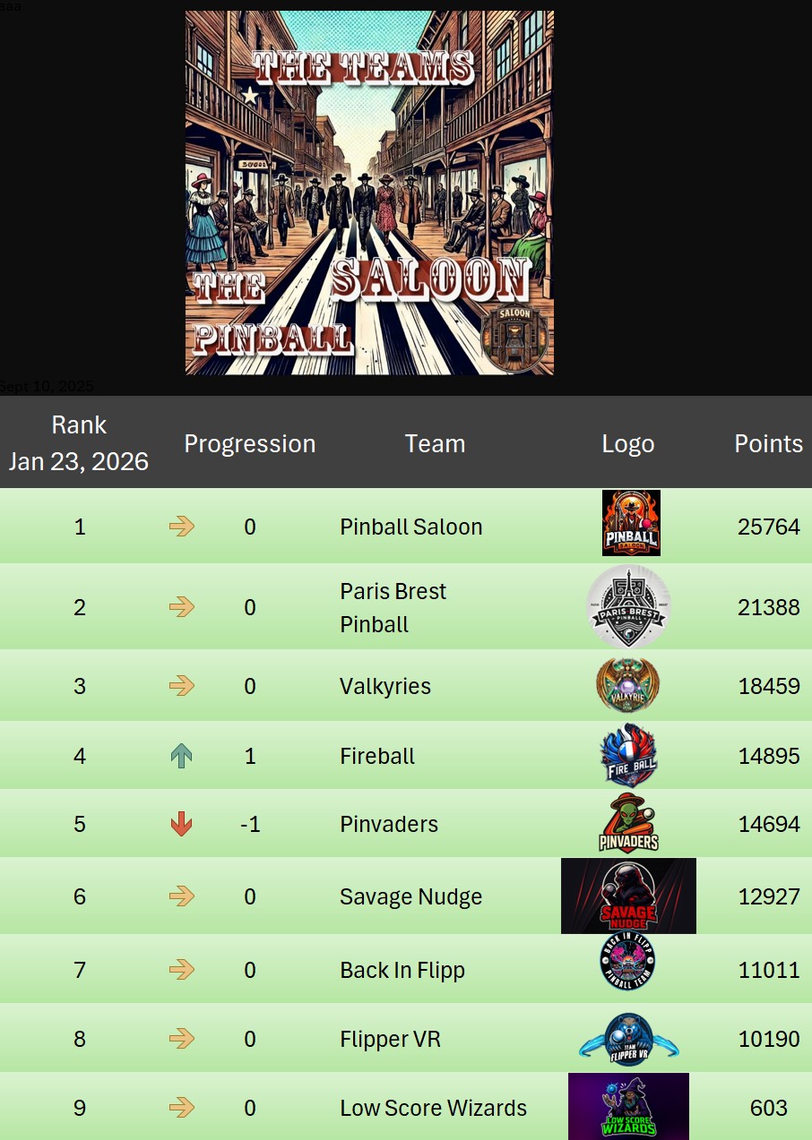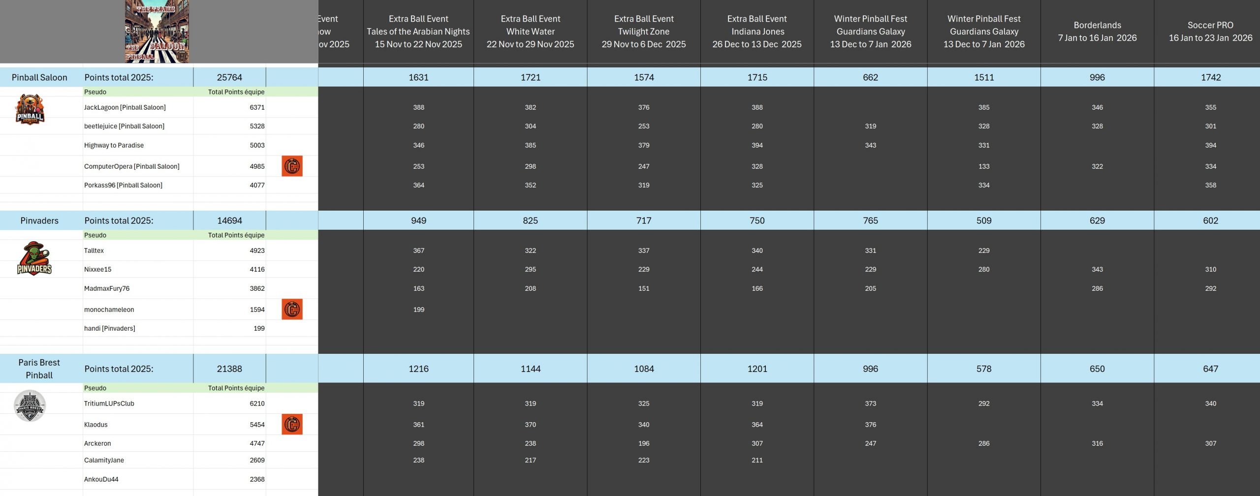Classic TournamentID #RWl6j3y69vf Pinball FXTop 5Result TournamentExtract from the general rankingWomen's rankingTeam's rankingPistoleros's rankingSeason 2 P-BnB Sept 2025 - Jan 2026TournamentsSaison 2Saison 1Saison 0LeaderboardsSaison 2Saison 1Saison 0EventsSummer...