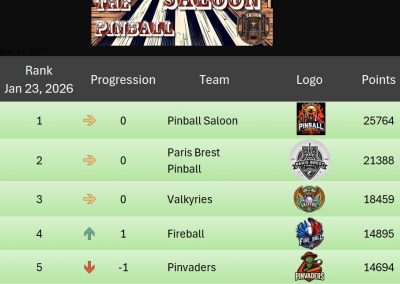 Classic TournamentID #Swltipm00i  Pinball FXTop 5Result TournamentExtract from the general rankingWomen's rankingTeam's rankingPistoleros's rankingSeason 2 P-BnB Sept 2025 - Jan 2026TournamentsSaison 2Saison 1Saison 0LeaderboardsSaison 2Saison 1Saison 0EventsSummer...