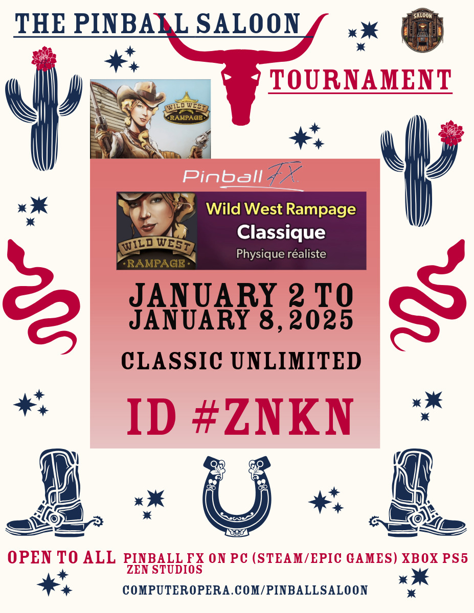 Classical TournamentPodiumResultsTournements Season 1TournoisMusiqueFractalesA proposSoutienThe Pinball SaloonDiscordFacebookSite webBluesky The Pinball SaloonCommunautéNo Man's SkyMass Effect AndromedaStarfieldDiscord The Pinball SaloonFacebook The Pinball...