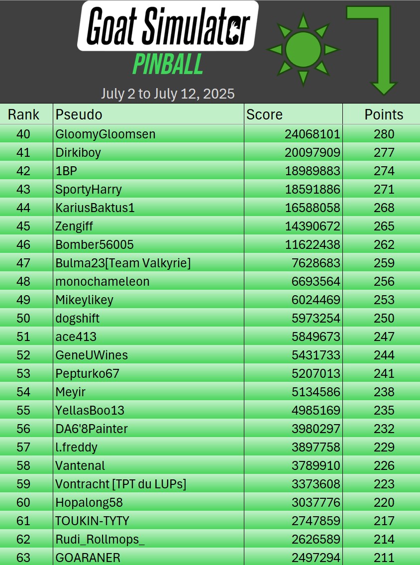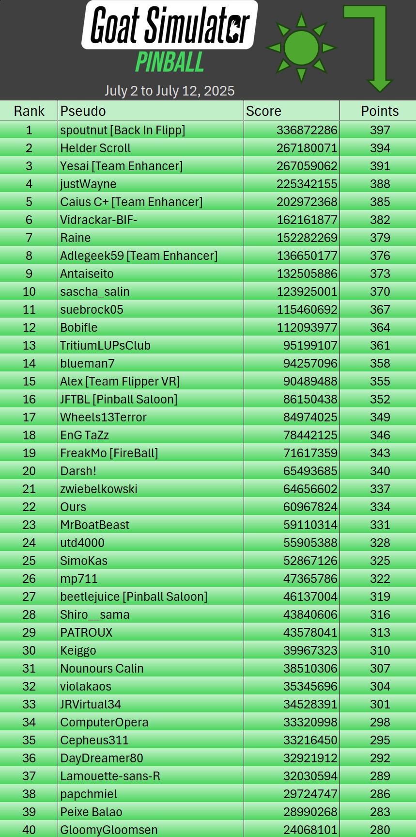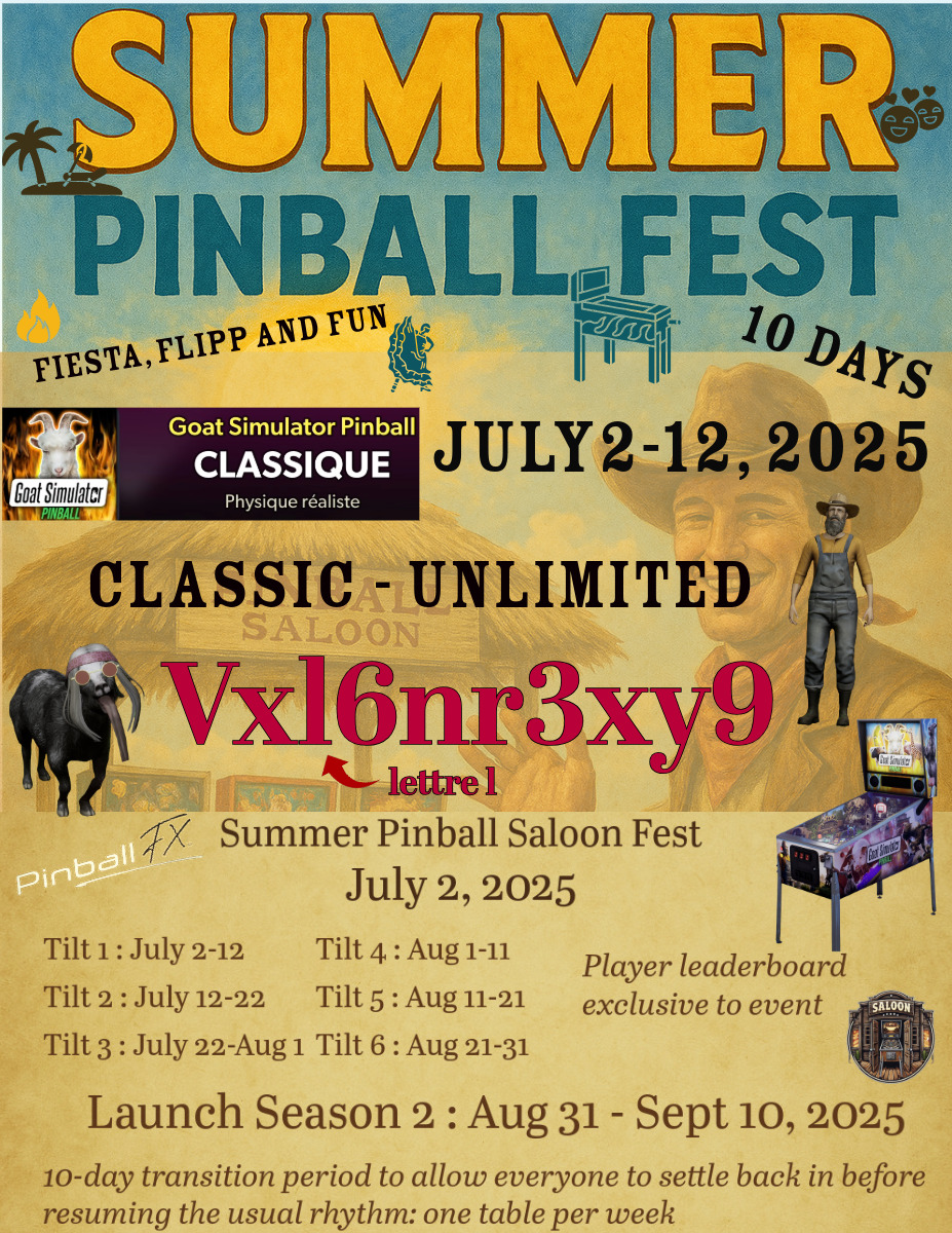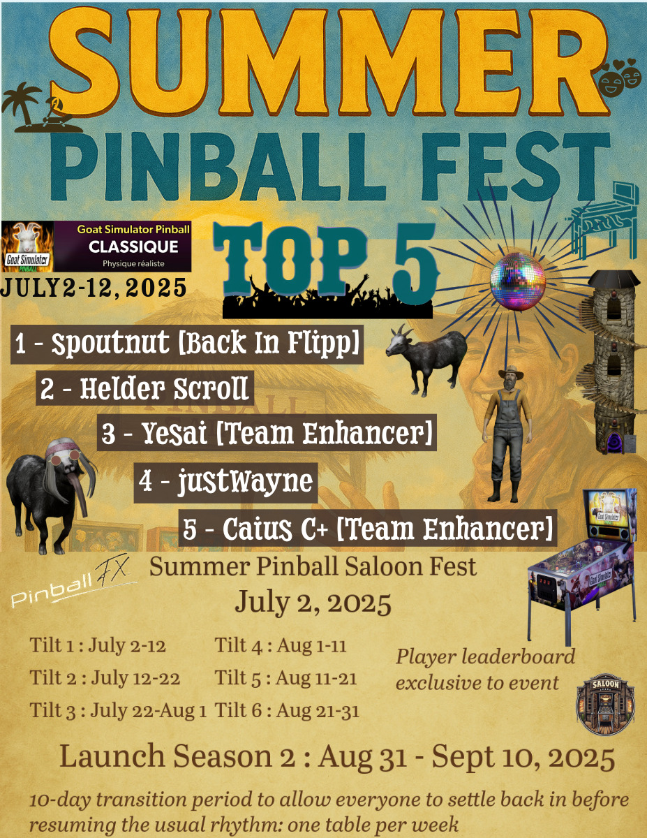 Classical TournamentID #Vxl6nr3xy6 Pinball FXTop 5ResultsExtract from the general ranking (Click to enlarge)Tournements Summer Pinball Fest 2025TournamentsSaison 2Saison 1Saison 0LeaderboardsSaison 2Saison 1Saison 0EventsSummer Pinball Fest 2025Fan Layout CityThe...