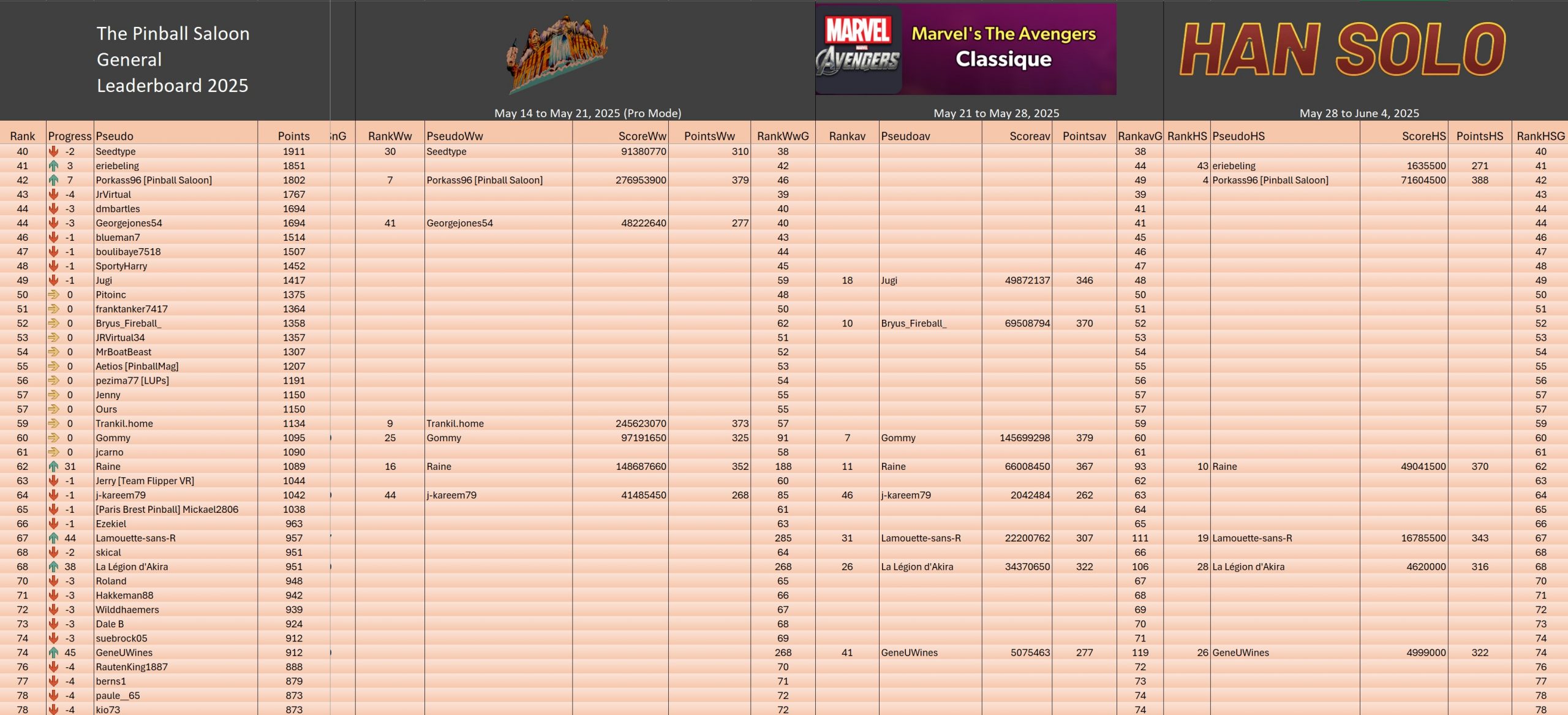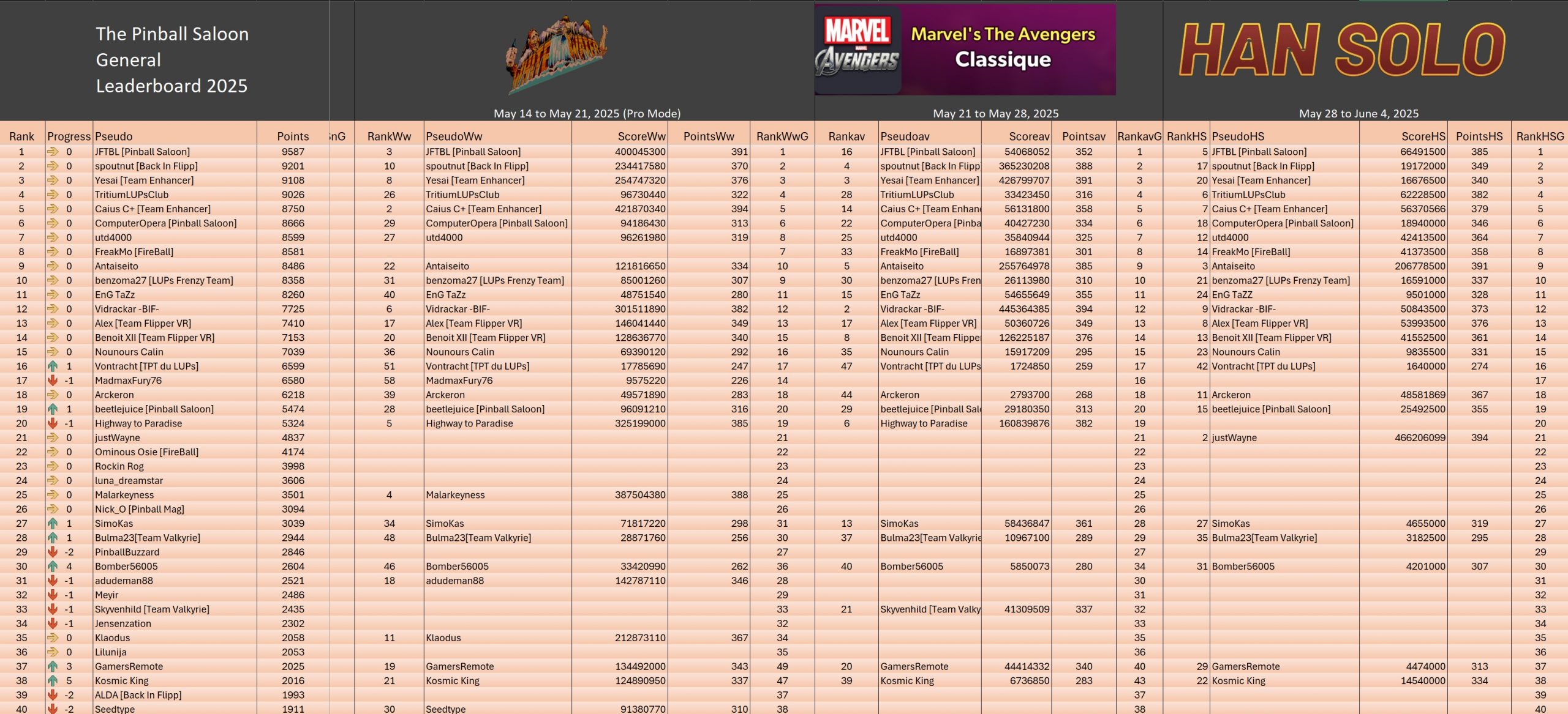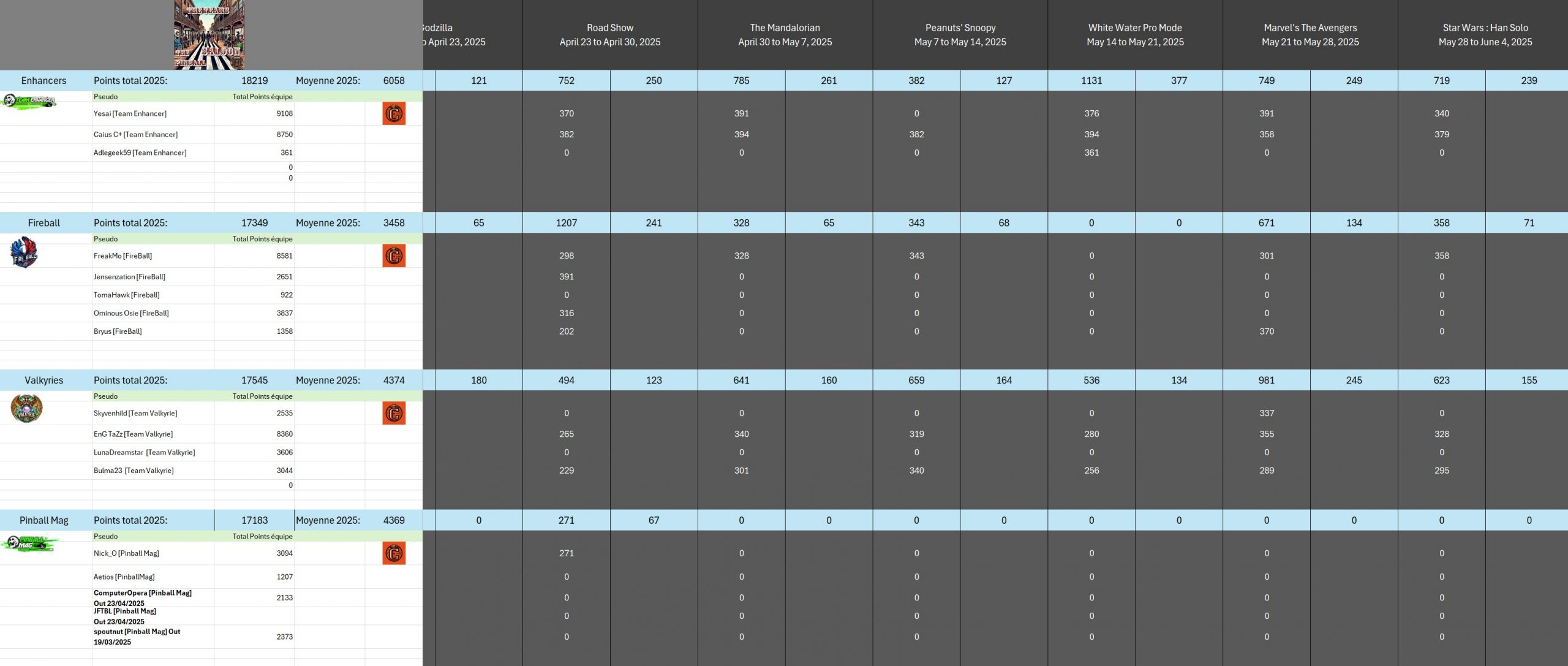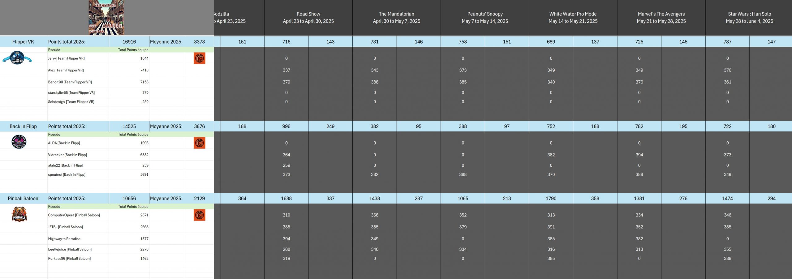 Classical TournamentResultsoverall team rankingPodiumResultsLeaderboardWomen's rankingTeam points detailsTrophiesTournements Season 1TournoisMusiqueFractalesA proposSoutienThe Pinball SaloonDiscordFacebookSite webBluesky The Pinball SaloonCommunautéNo Man's SkyMass...
