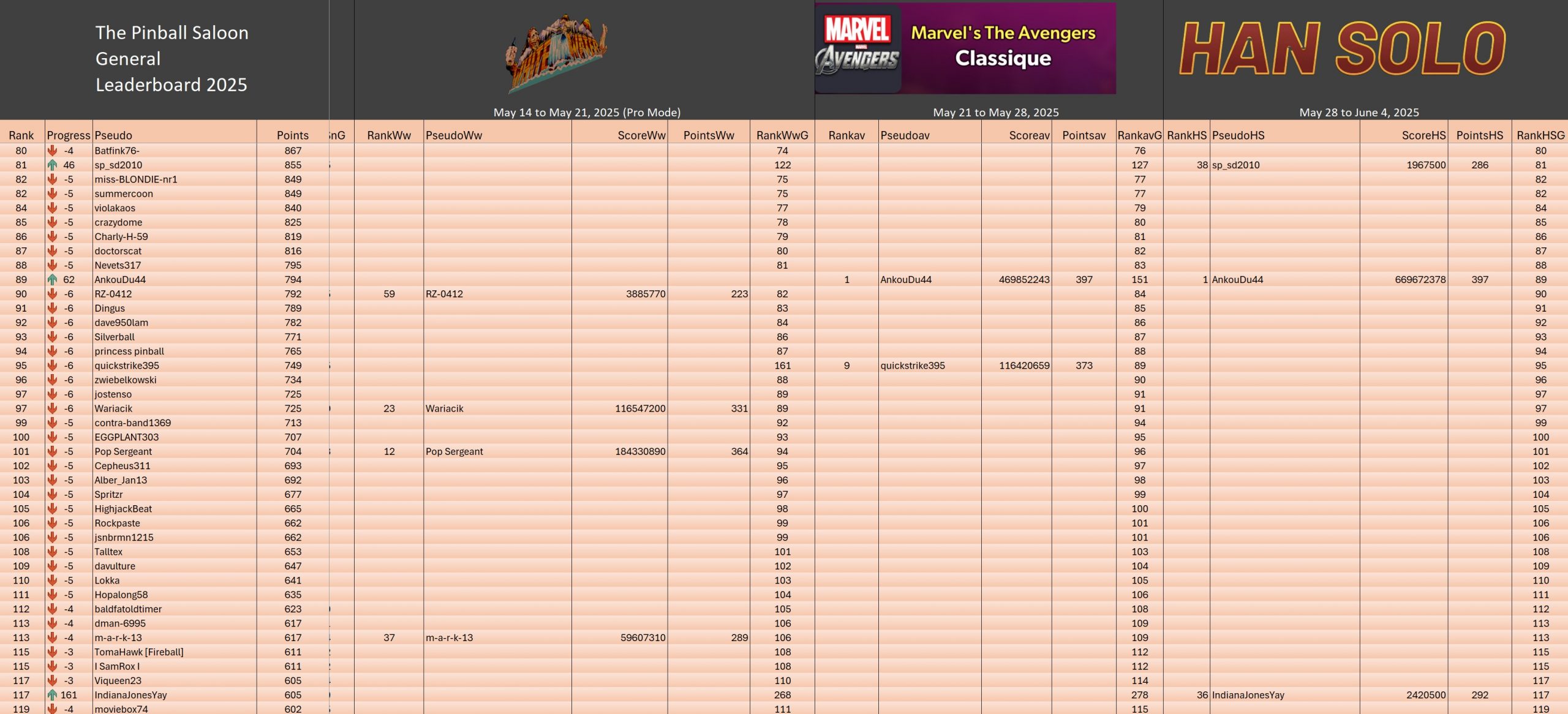 Mode Pro TournamentResultsoverall team rankingPodiumResultsLeaderboardWomen's rankingTeam points detailsTrophiesTournements Season 1TournoisMusiqueFractalesA proposSoutienThe Pinball SaloonDiscordFacebookSite webBluesky The Pinball SaloonCommunautéNo Man's SkyMass...
