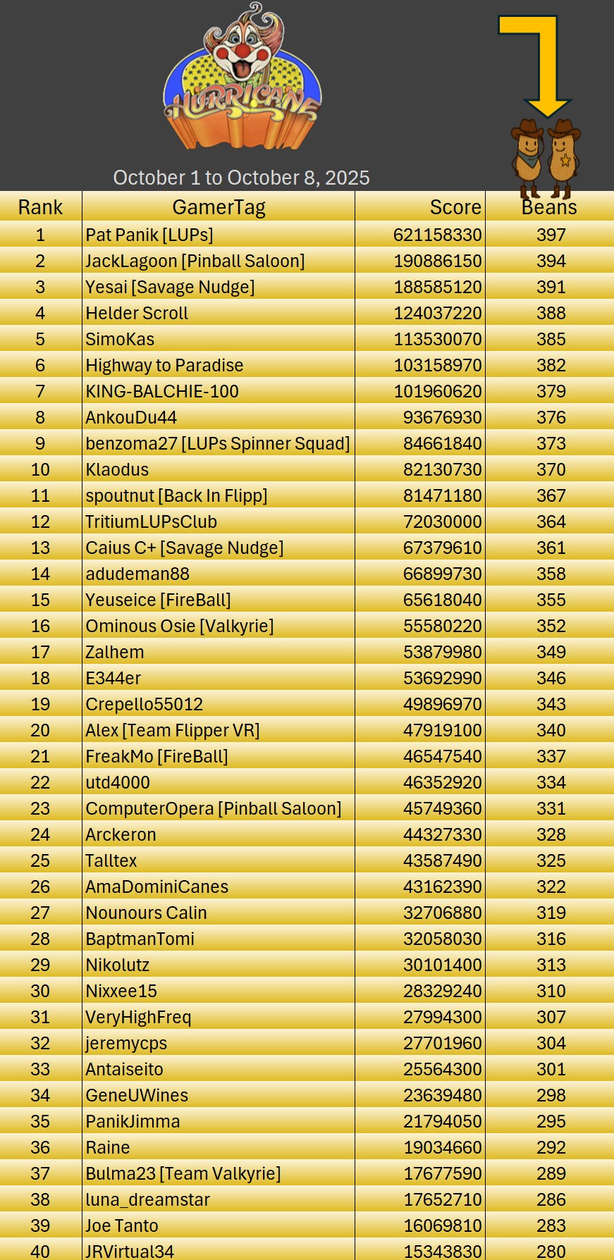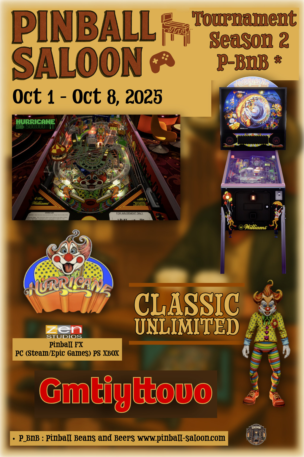 Classic TournamentID #K39sytawju    Pinball FXTop 5Result TournamentExtract from the general rankingWomen's rankingTeam's rankingPistoleros's rankingSeason 2 P-BnB Sept 2025 - Jan 2026TournamentsSaison 2Saison 1Saison 0LeaderboardsSaison 2Saison 1Saison 0EventsSummer...
