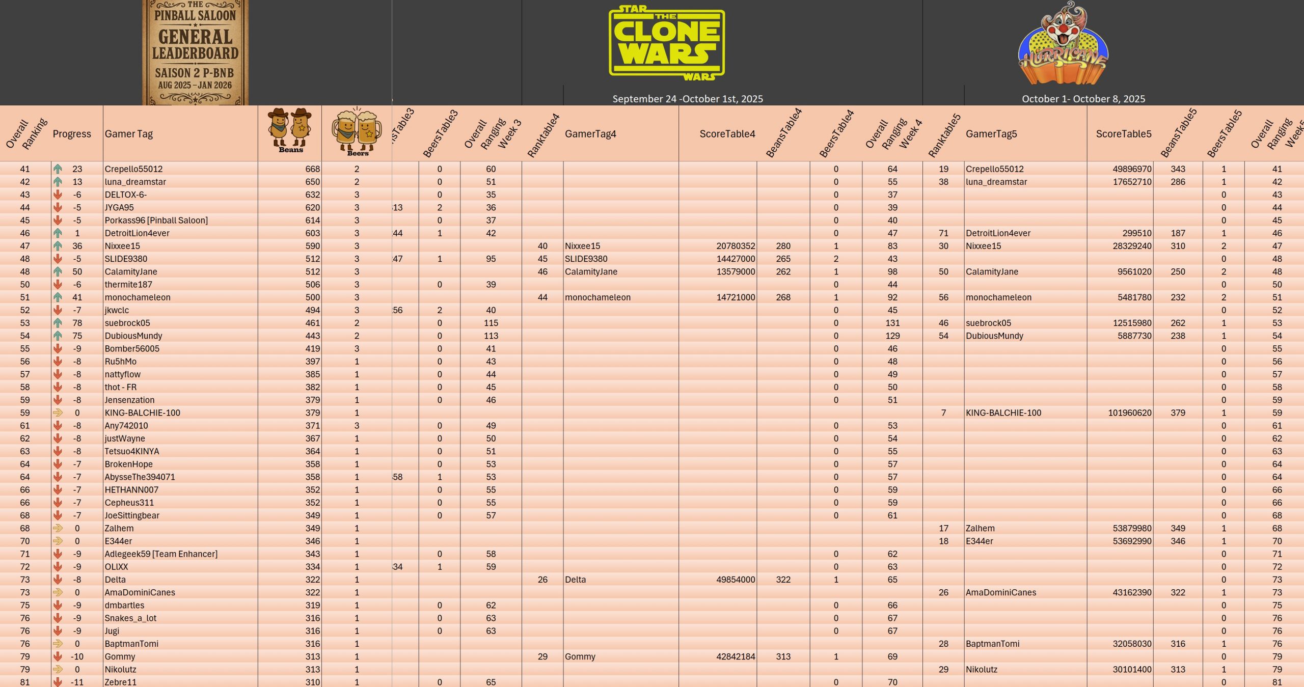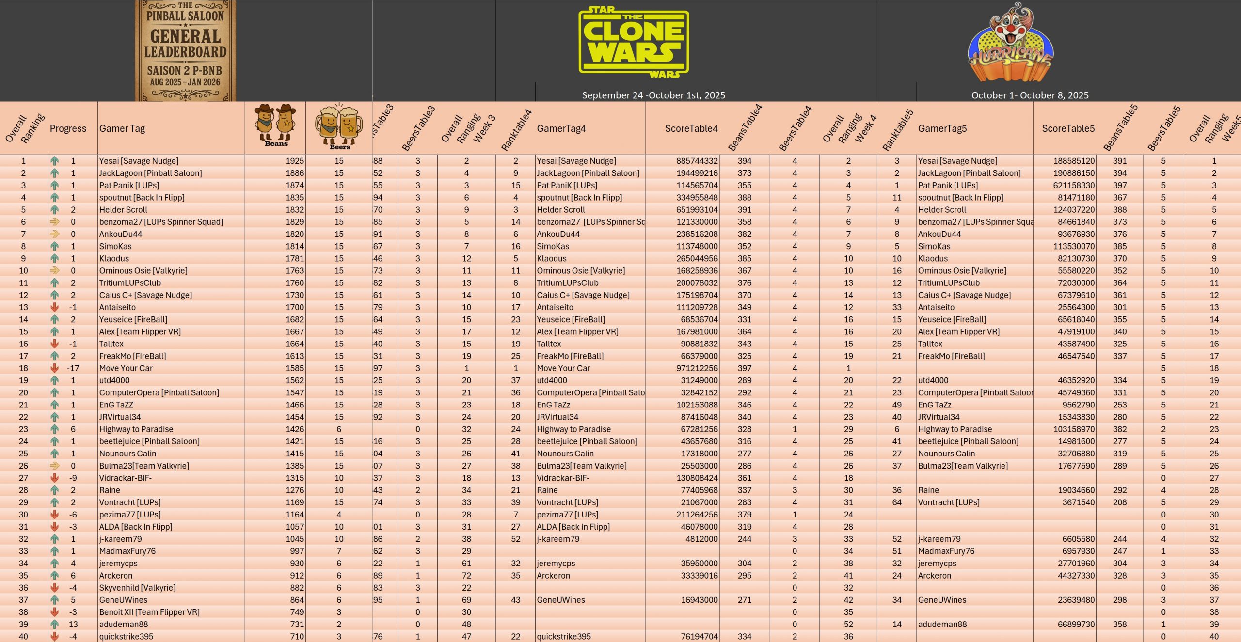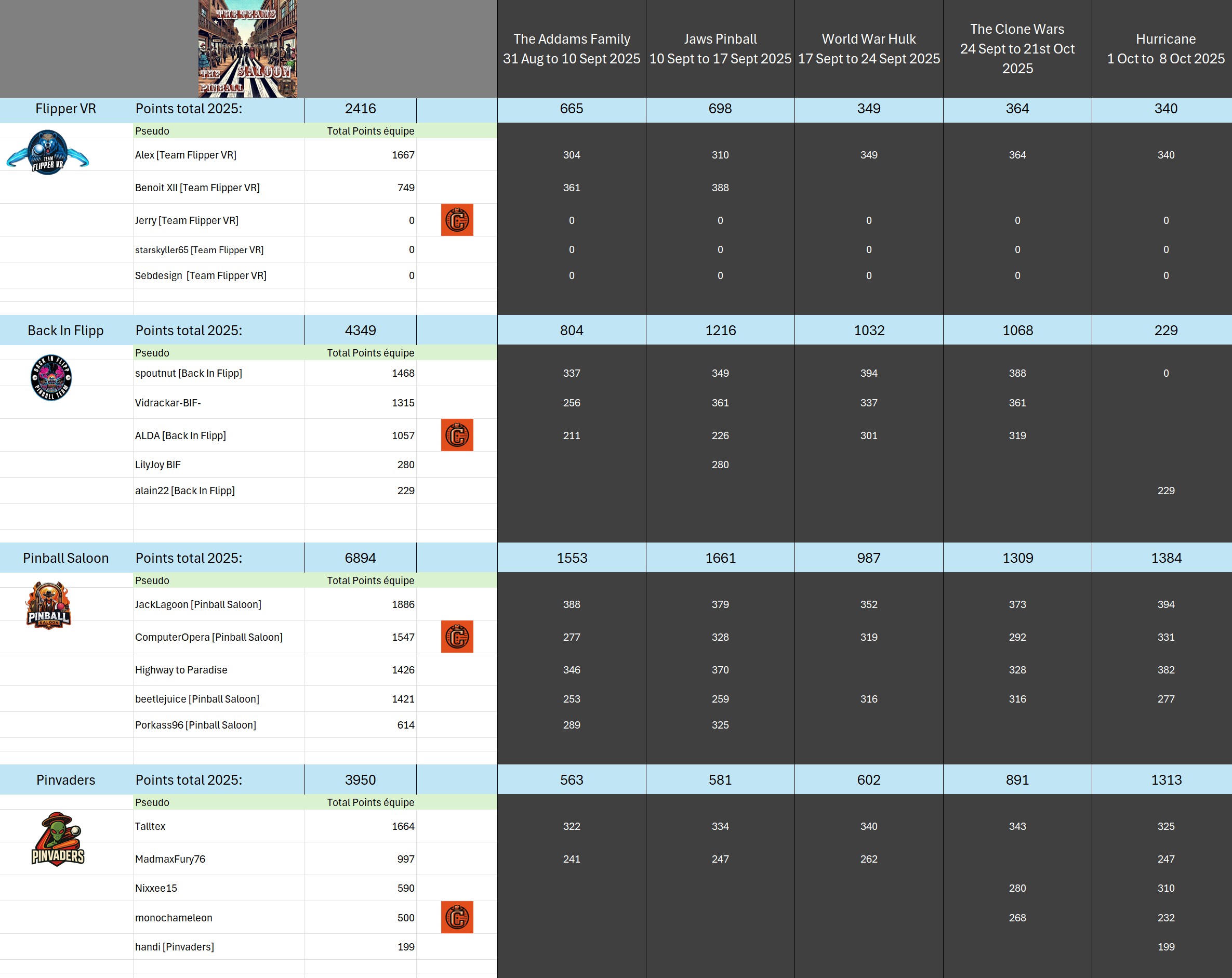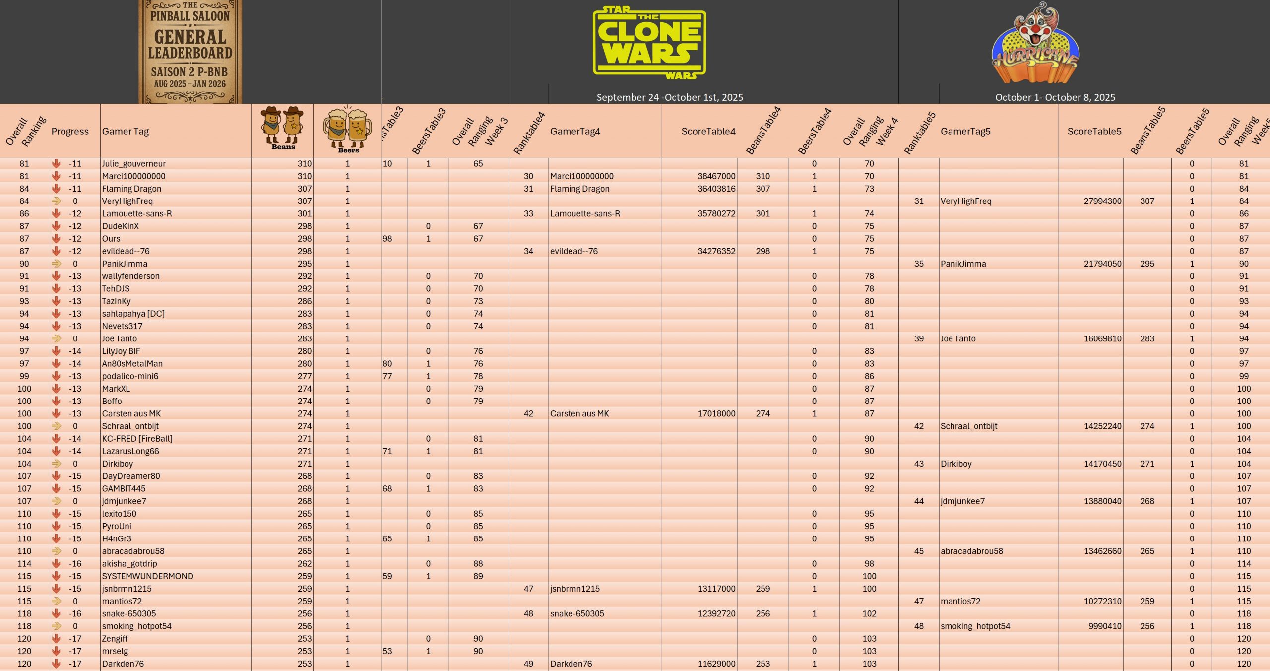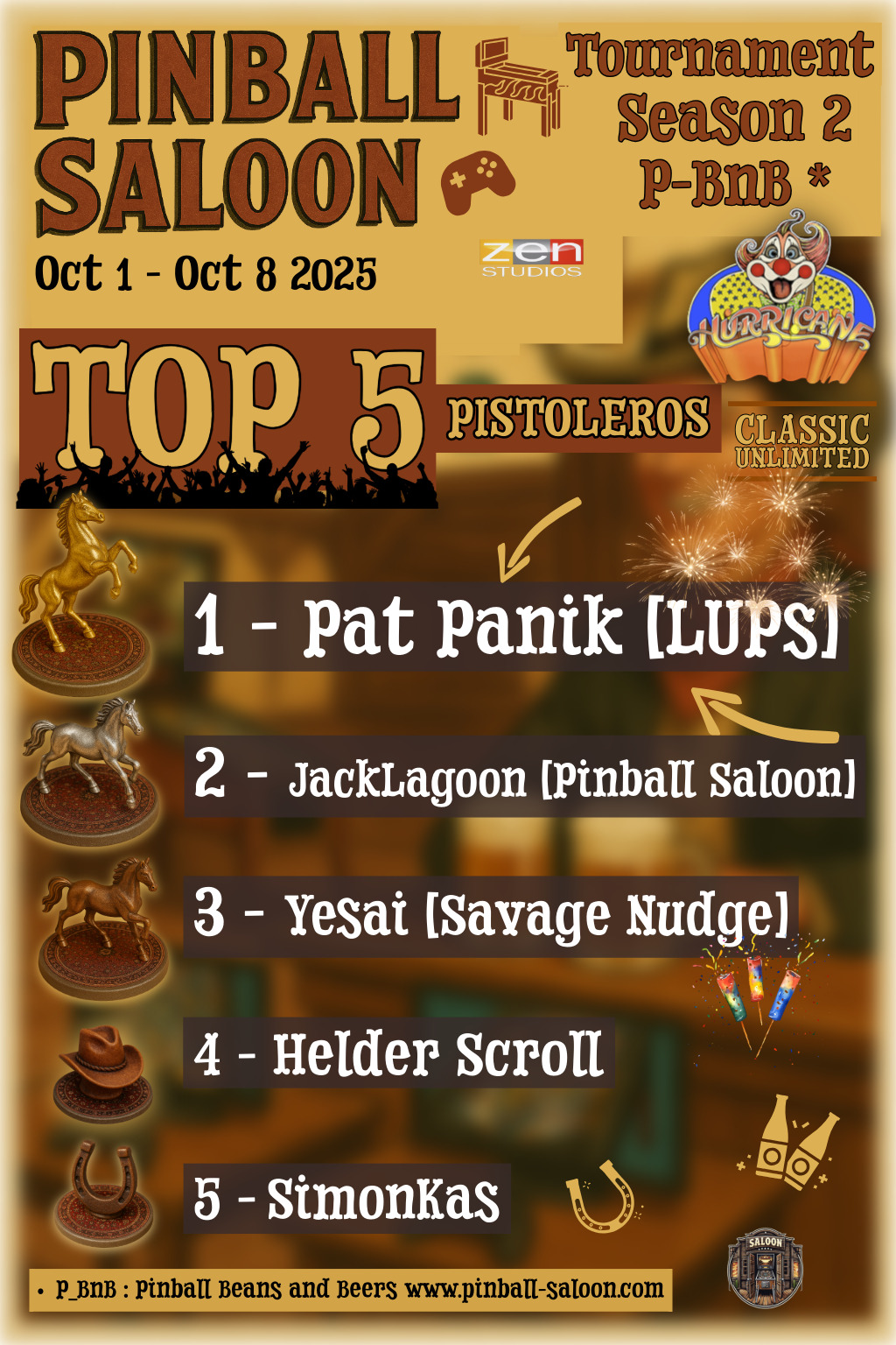 Classic TournamentID #Trnpms5bj3  Pinball FXTop 5Result Tournament Extract from the general rankingWomen's rankingTeam's rankingPistoleros's rankingSeason 2 P-BnB Sept 2025 - Jan 2026TournamentsSaison 2Saison 1Saison 0LeaderboardsSaison 2Saison 1Saison 0EventsSummer...