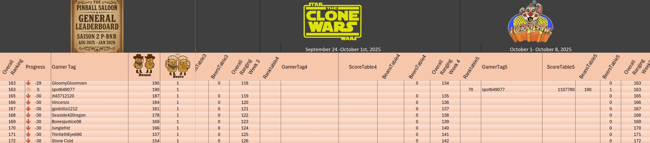 Classic TournamentID #Ohh469z9vd  Pinball FXTop 5Result TournamentExtract from the general rankingWomen's rankingTeam's rankingPistoleros's rankingSeason 2 P-BnB Sept 2025 - Jan 2026TournamentsSaison 2Saison 1Saison 0LeaderboardsSaison 2Saison 1Saison 0EventsSummer...