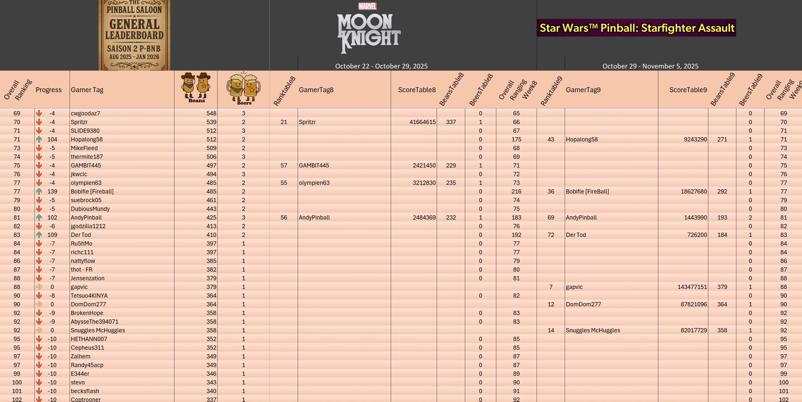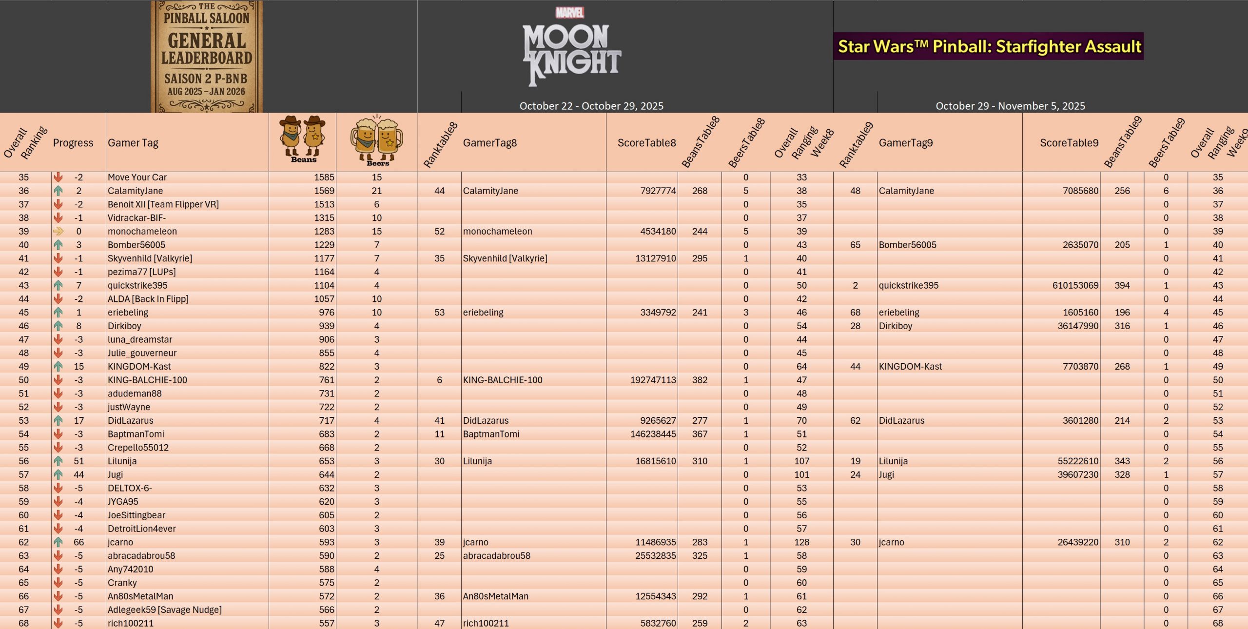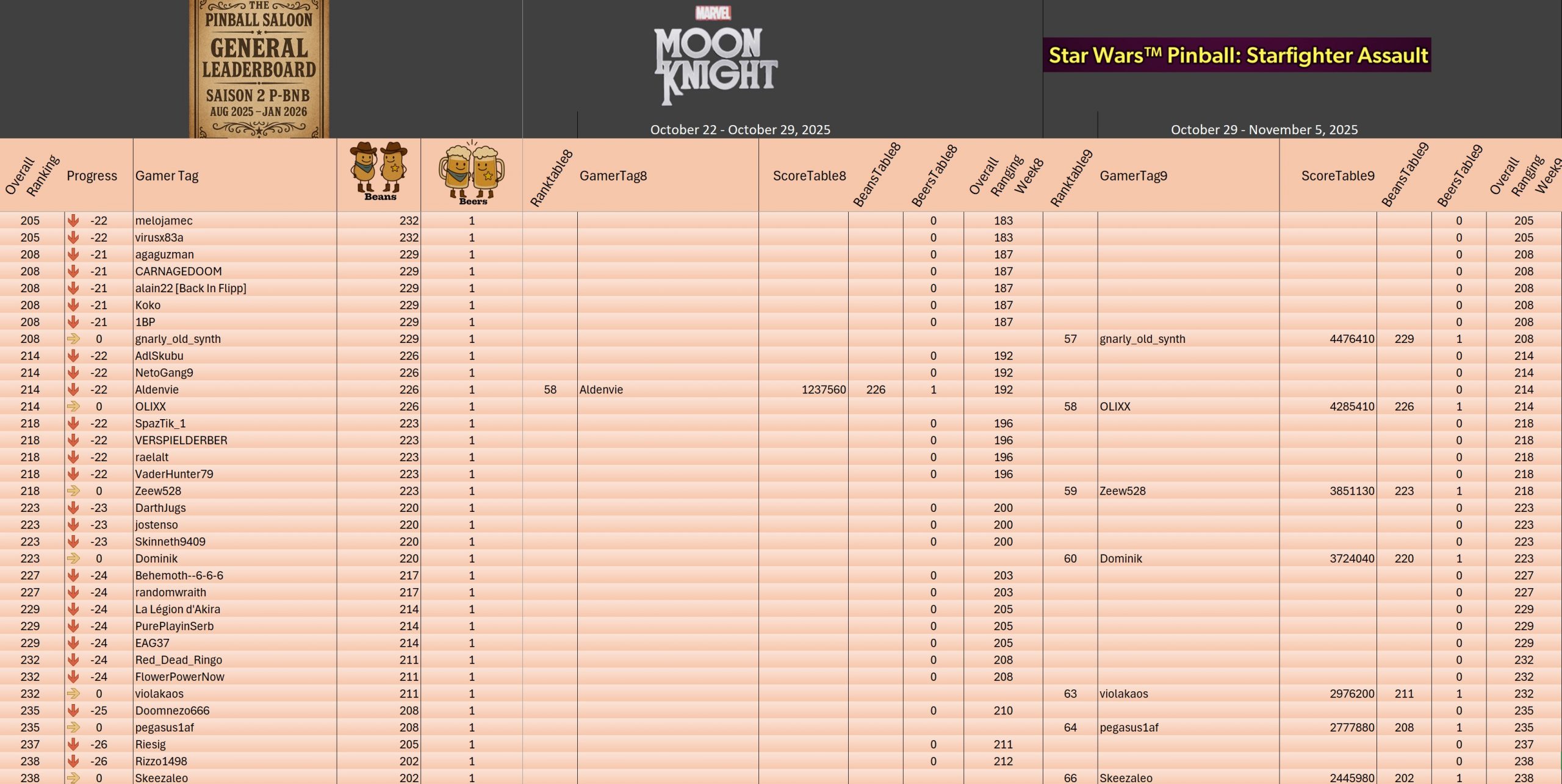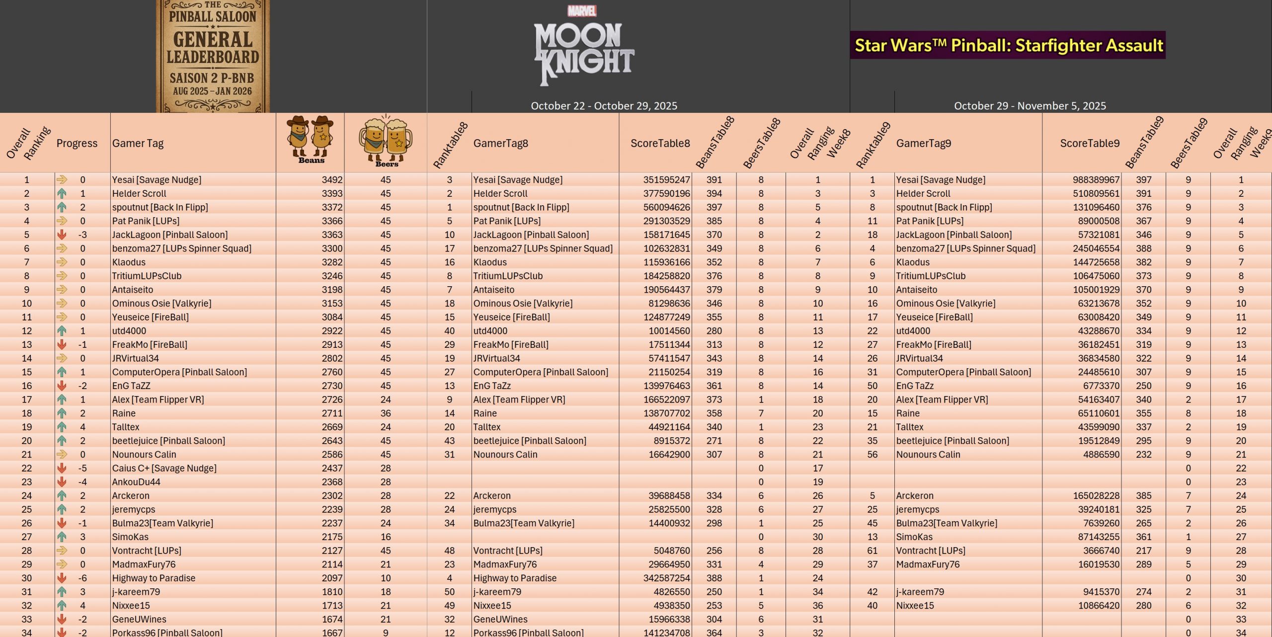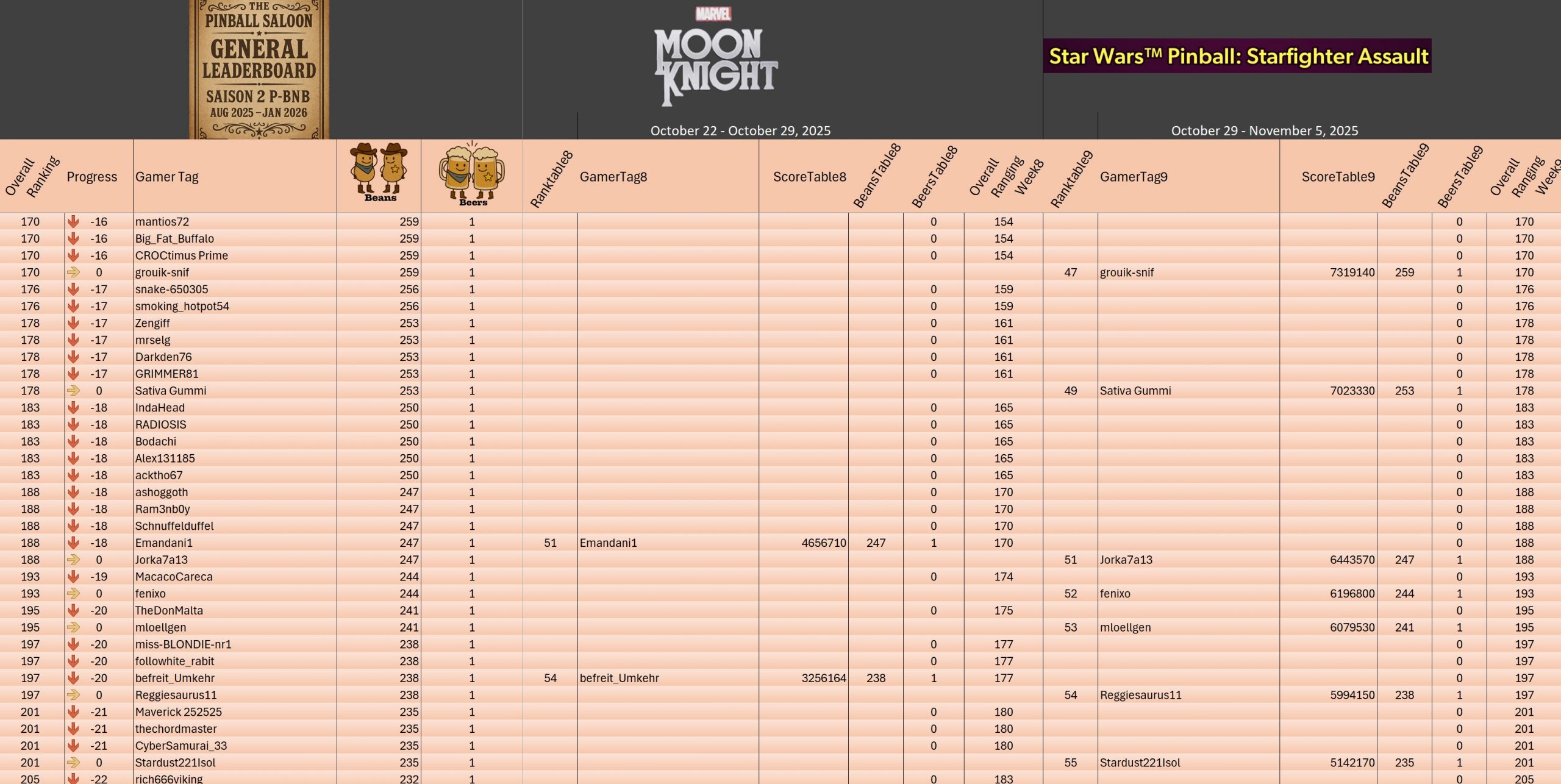 Classic TournamentID #K39sytawju Pinball FXTop 5Result TournamentExtract from the general rankingWomen's rankingTeam's rankingPistoleros's rankingSeason 2 P-BnB Sept 2025 - Jan 2026TournamentsSaison 2Saison 1Saison 0LeaderboardsSaison 2Saison 1Saison 0EventsSummer...