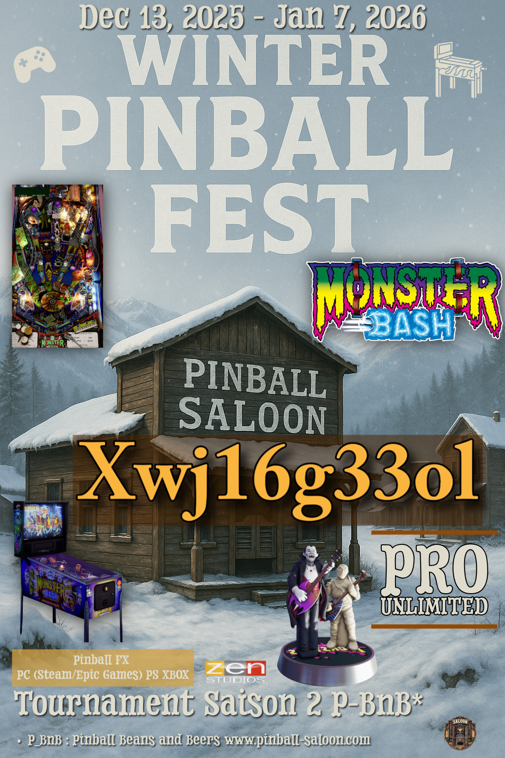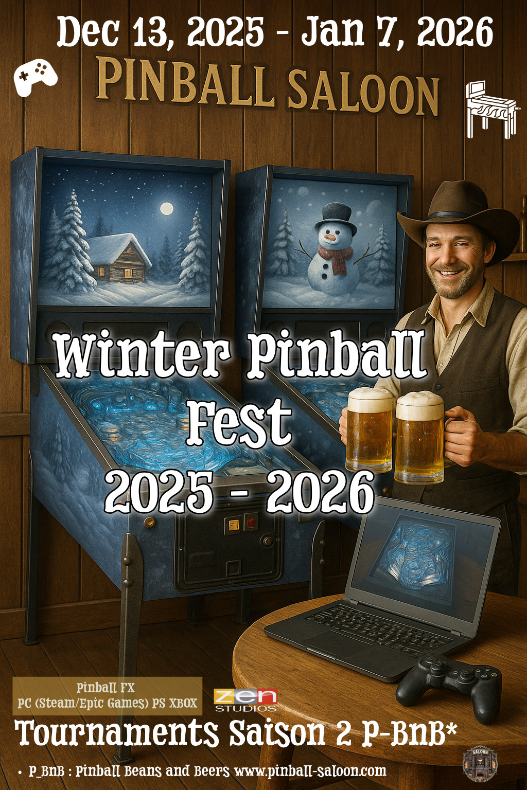 Ils se termineront le 7 janvier 2026 et compteront pour le classement général de la Saison 2 du Pinball Saloon.